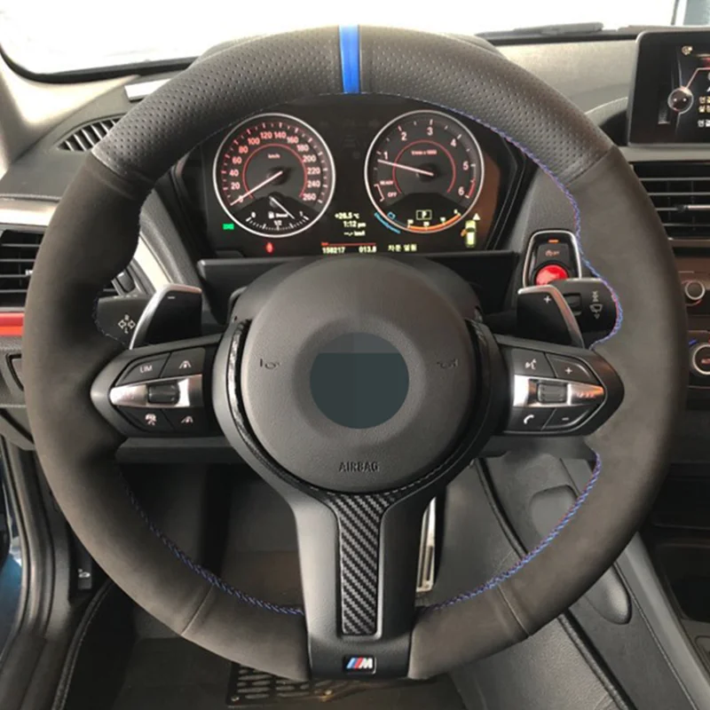 Сшитая вручную черная замша чехол рулевого колеса автомобиля для BM...