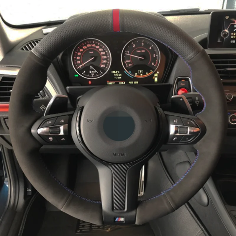 Черная замша кожа Красный Маркер чехол рулевого колеса автомобиля для BMW F87 M2 F80 M3 F82 M4 M5 F12 F13 M6 F85 X5 X6 м F33 F30 M Sport
