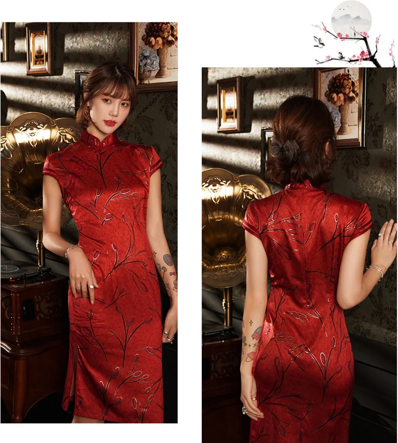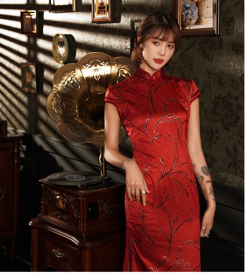 Sheng Coco, китайское женское красное платье-Ципао до колена, мерсеризованное платье-Ципао для выступлений и вечевечерние, восточное платье-корсет размером 4XL