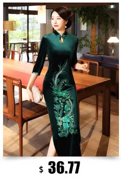Бархатное платье Ципао Sheng Coco с вышивкой павлина, платье Ципао ...