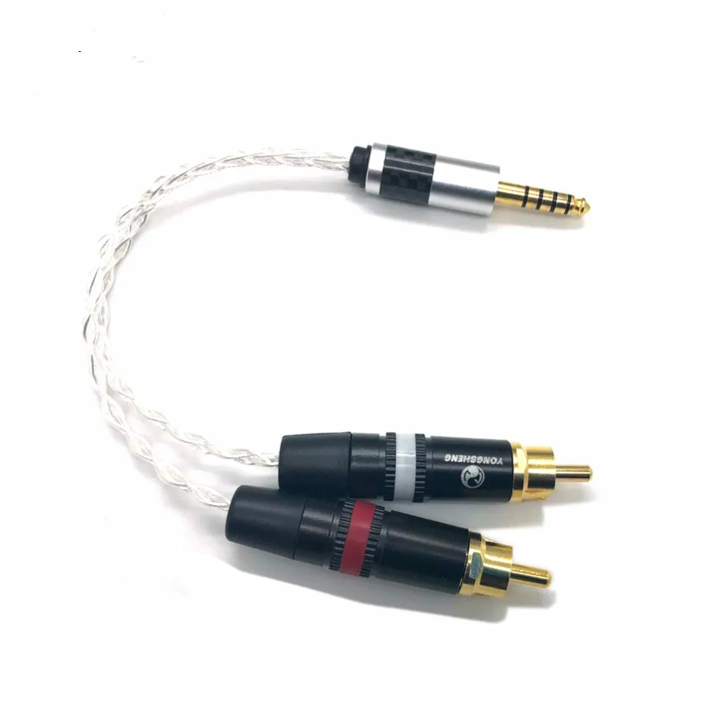Кабель-переходник 2,5 мм TRRS4,4 мм балансный штекер на 2 штекера RCA, медь, посеребренный аудиокабель 7N OCC