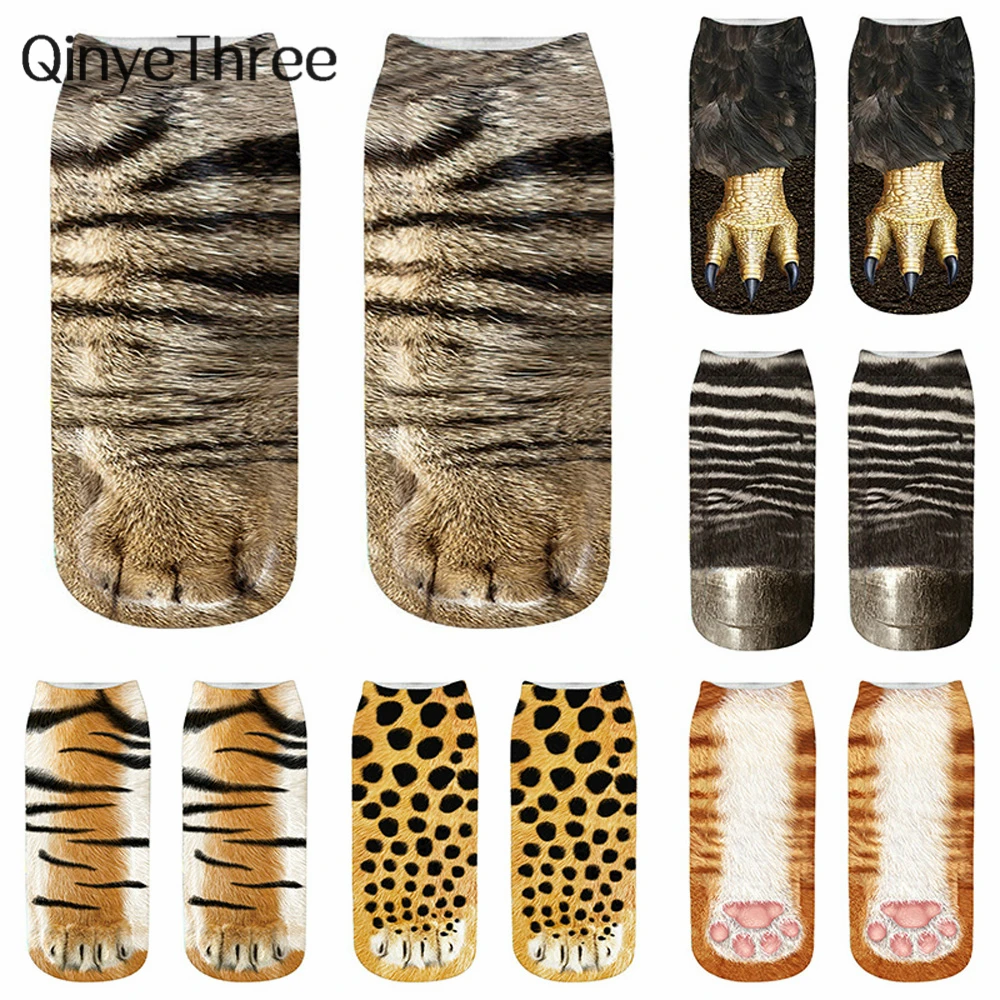 Новые счастливые 3D Животные коготь двусторонний принт унисекс мягкие повседневные милые хлопковые короткие носки до щиколотки смешная собака Зебра кошка лапа Косплей