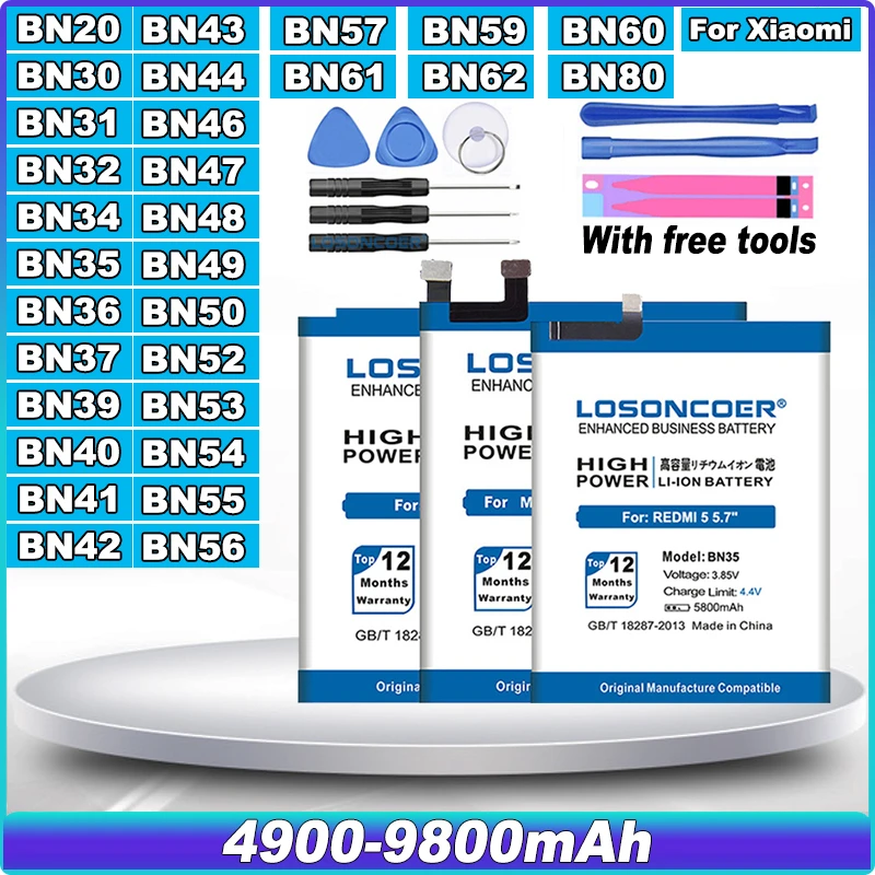 Аккумулятор для Xiaomi Redmi Note 4 Plus 4X 5 5A Prime 6 8 8T 9 Pro 9S,6A 7A,Mi 5 6X A2 A1,Mi Play 5X,POCO X3 Pro M3 M2 Pro 9A 9C,S2