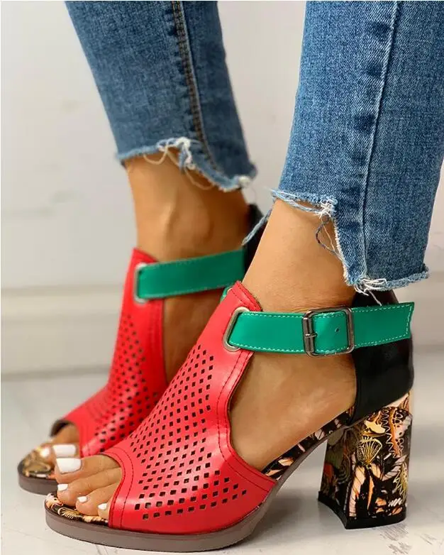 Босоножки женские на блочном каблуке, классические сандалии с ремешком и пряжкой, из флока, модная летняя обувь, B370