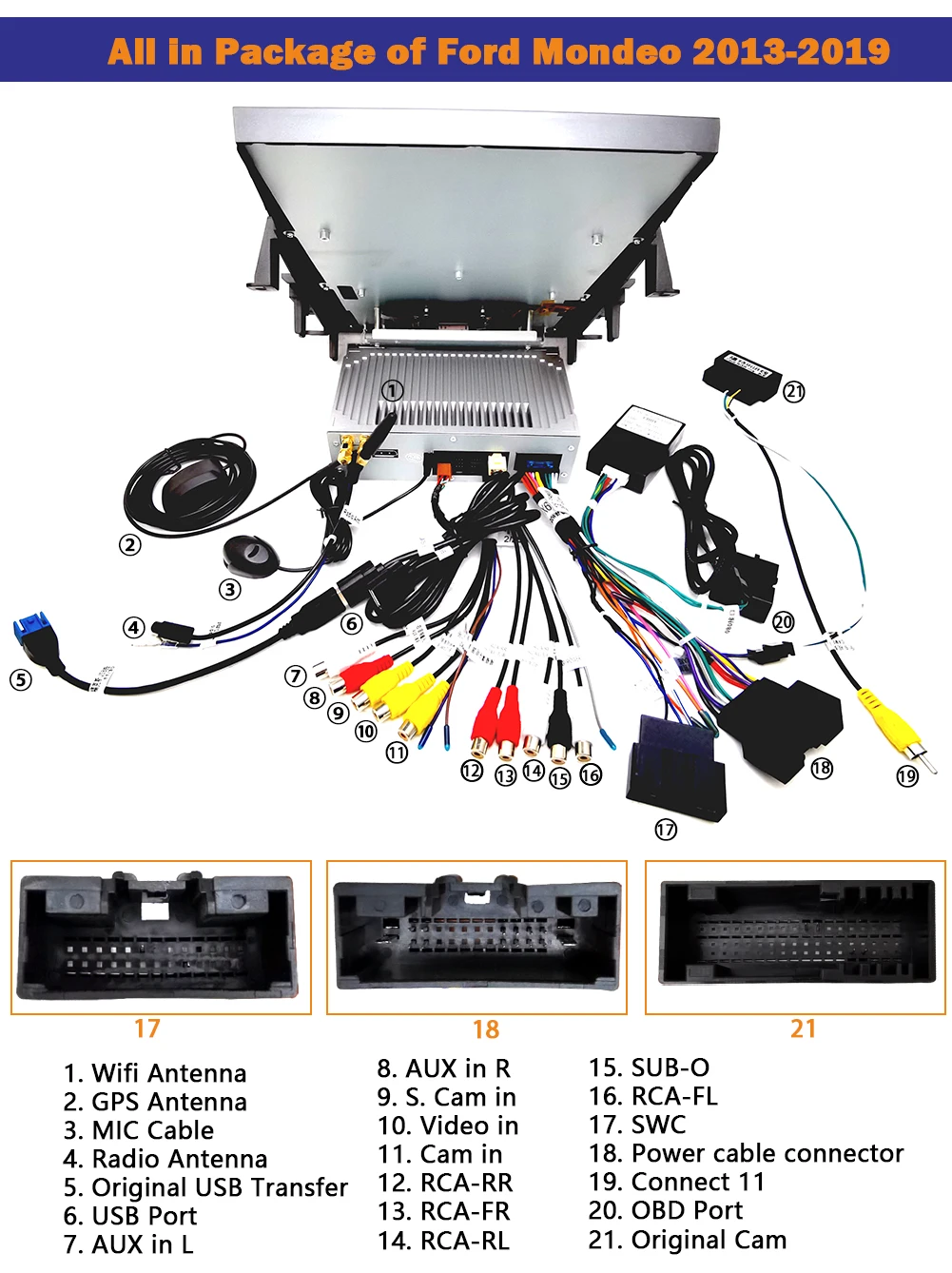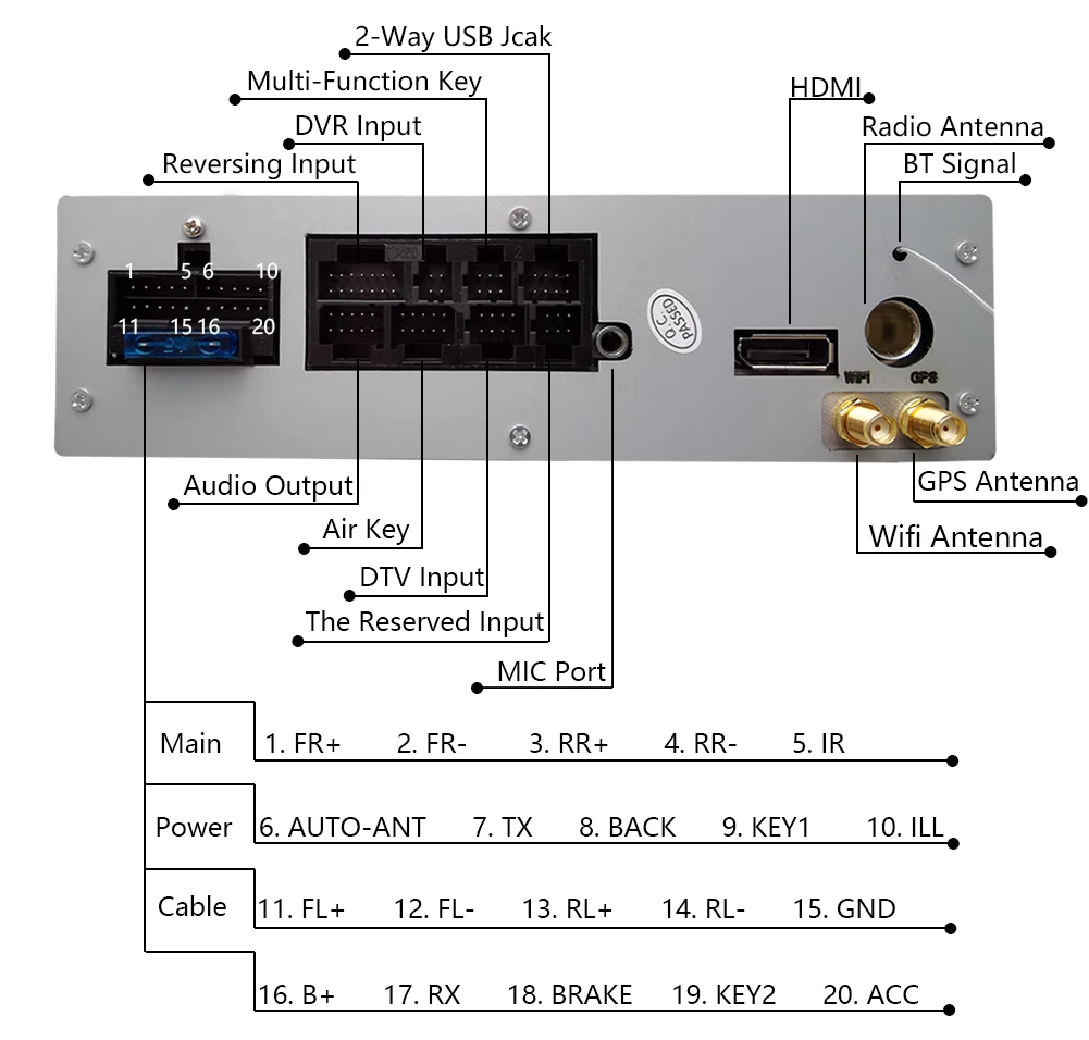 8. Поддержка RCA AHD камера заднего вида, RCA видео вход, RCA DVR вход или USB DVR