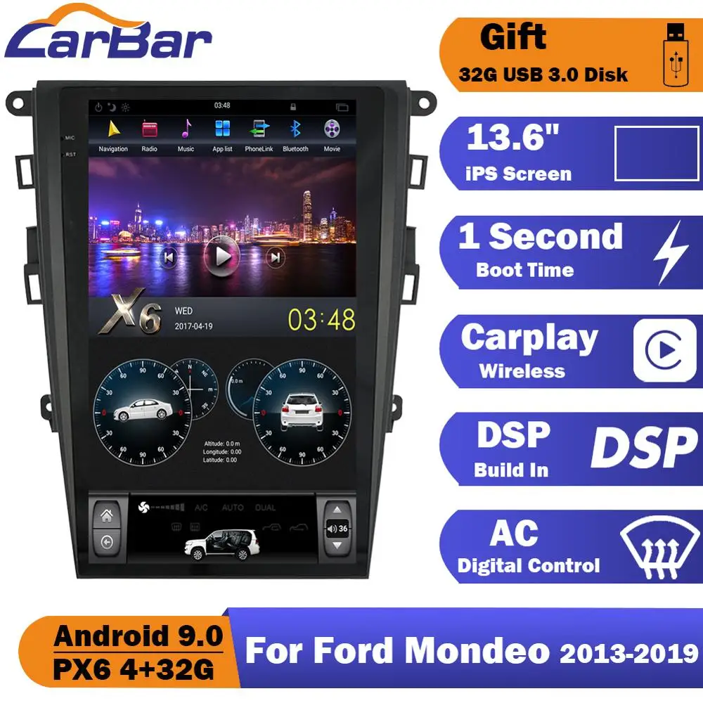 Тесла стиль вертикальный экран Android 9,0 автомобильный DVD GPS Радио Навигация стерео аудио плеер для Ford Mondeo Fusion MK5 2013-2019