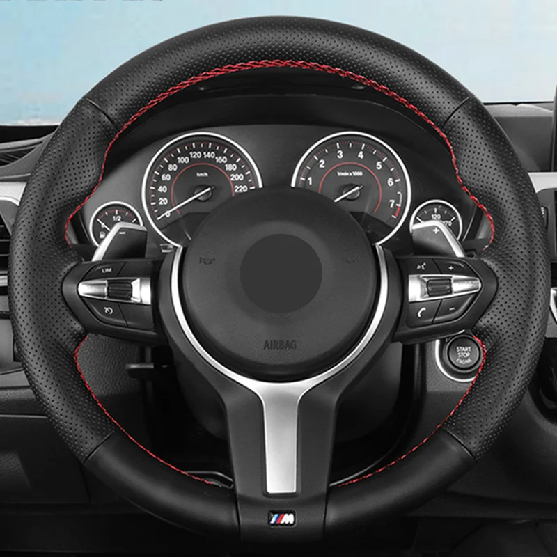 Искусственная кожа для автомобилей BMW M2, F87, F80, M3, F82, M4, F12, F13, M5, M6, F85, X5, M, F86, X6, F33, F30, черного цвета, чехол рулевого колеса автомобиля