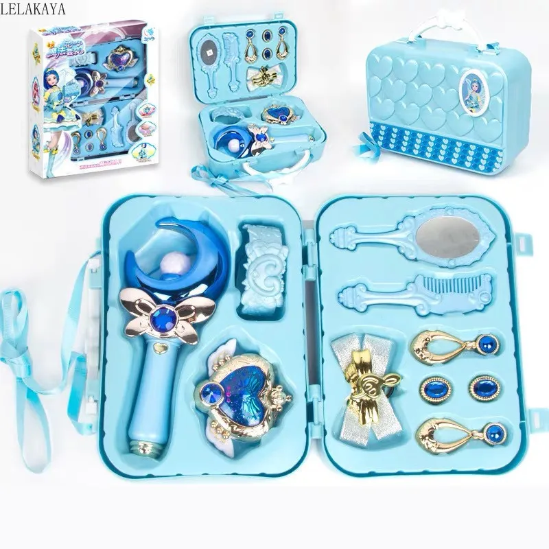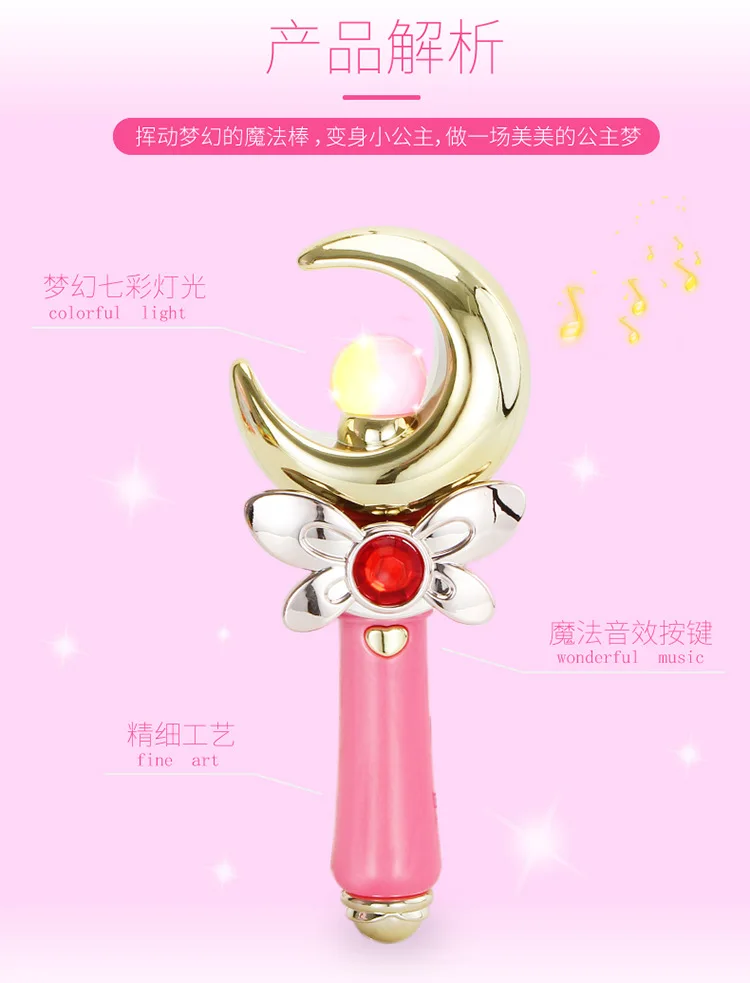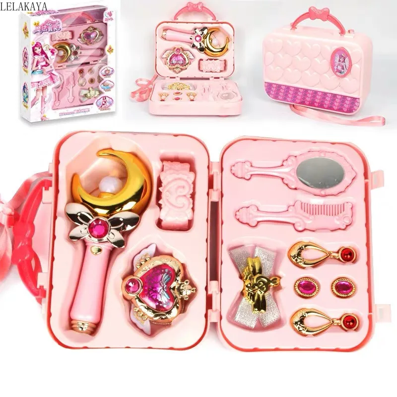 Цветочная фея, волшебный орнамент блестящее ожерелье, аниме, напечатанный рисунок, розовая Луна Светодиодный Волшебная палочка, светящаяся палочка, сумочка, набор