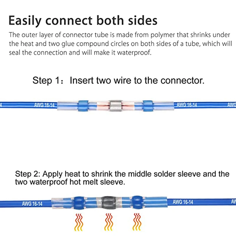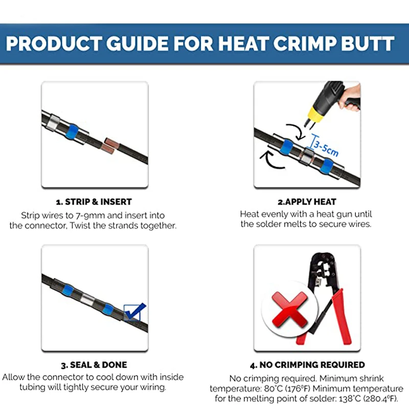 Термоусадочные стыковые клеммы, 102050 шт., водонепроницаемое уплотнение для припоя, из луженой меди, для электрических проводов, клеммы для соединения кабеля 26-24 AWG