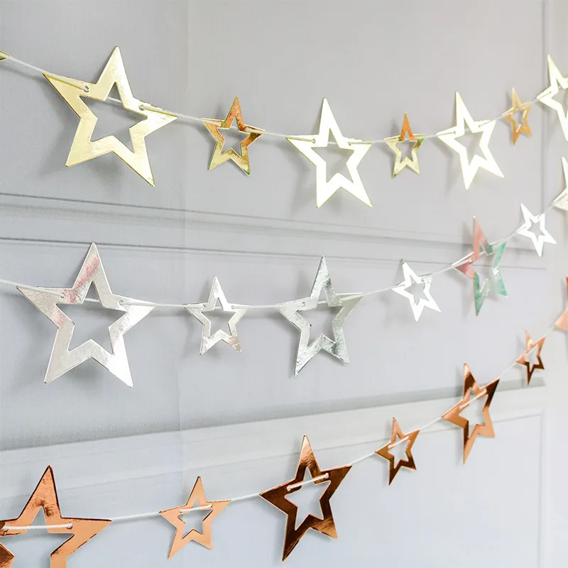 Флаг с пятиконечными звездами, бумажный, висячий, Цветочный, украшение для свадьбы, дня рождения, для взрослых, флажок на день рождения