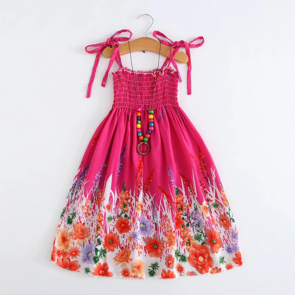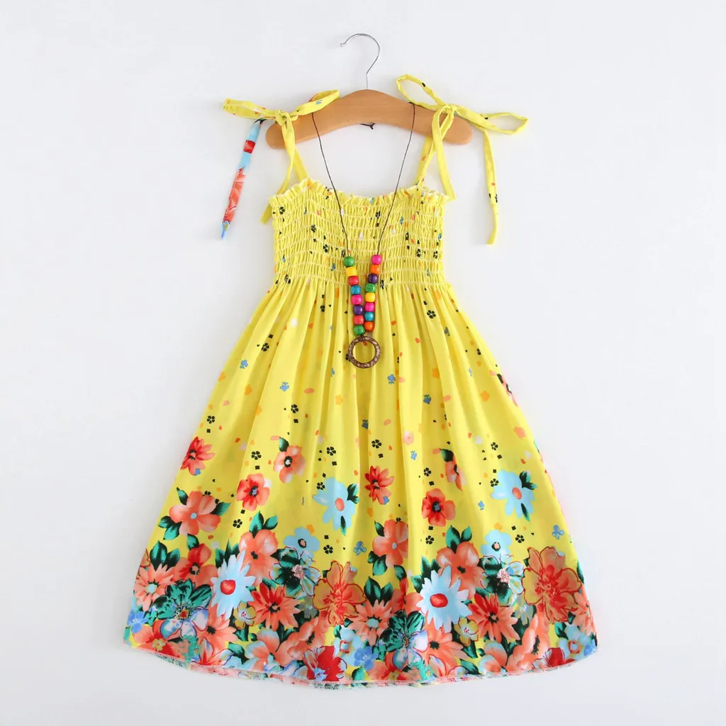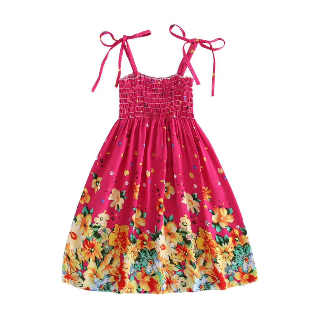 Модное платье для девочек; Богемное пляжное платье принцессы с цветочным принтом на бретелях для маленьких девочек; Милый детский костюм