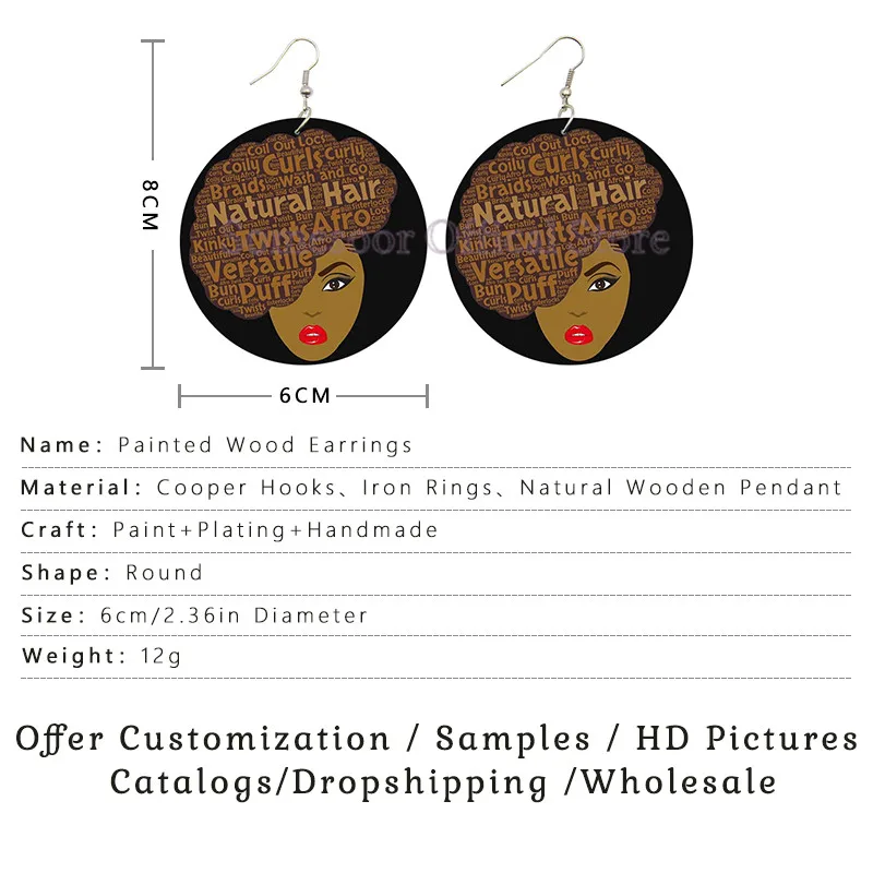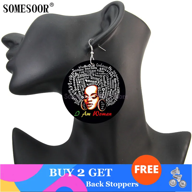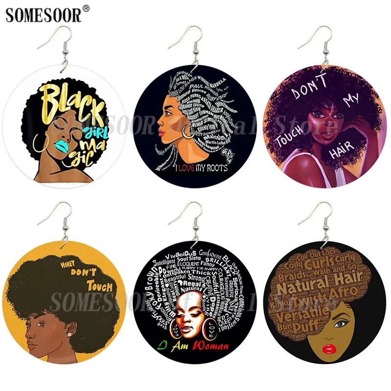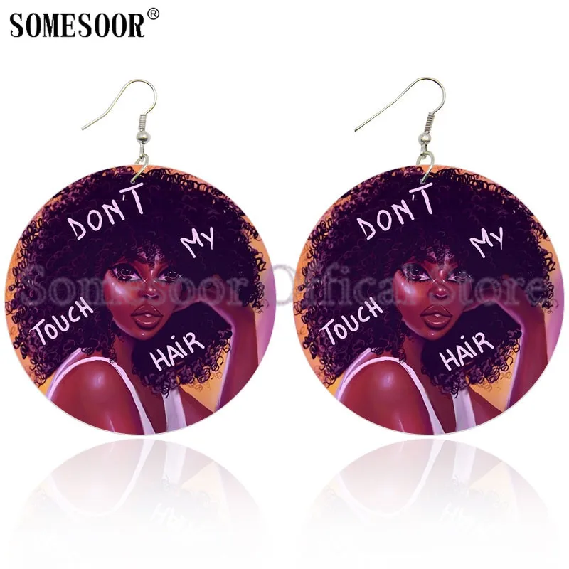 SOMESOOR мои афро корни деревянные висячие серьги с принтом Не прикасайтесь вьющиеся натуральные волосы Черная Девушка Волшебные мешки для женщин Подарки