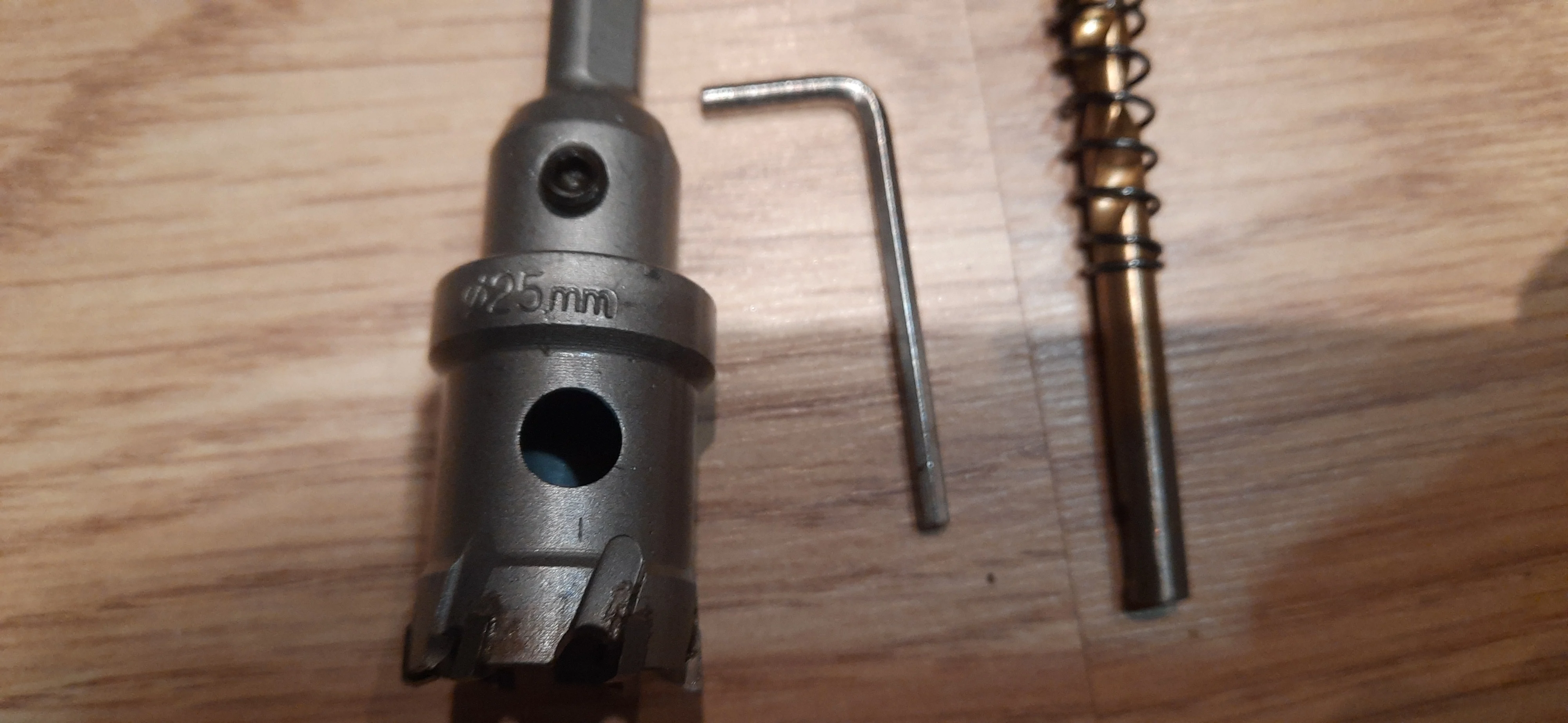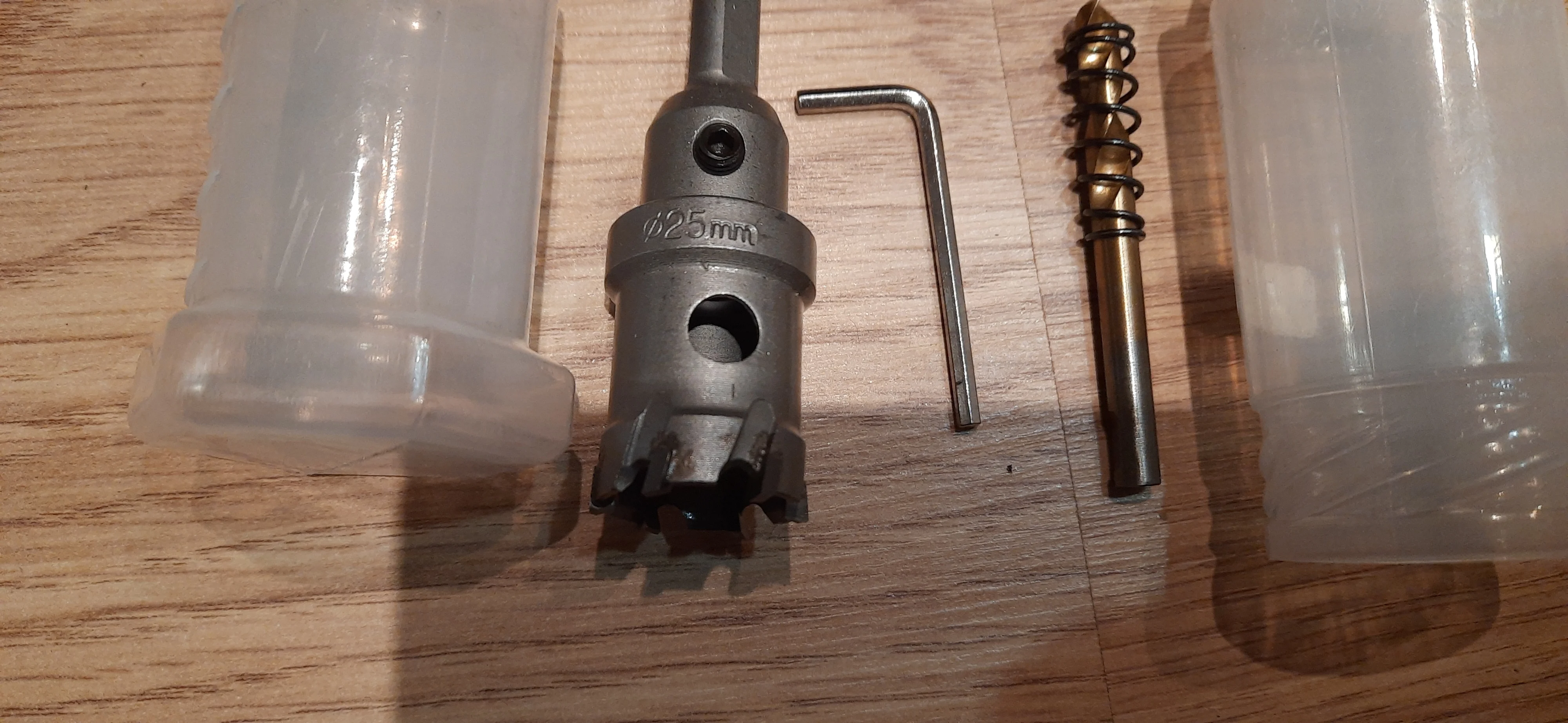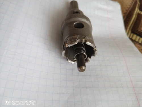 Коронку на 20мм как получил, сразу поверил. Сверлил железо чернуху толщиной 8мм. Сверлил с маслом на 550 оборотах на станке, все отлично просверлила. Отверстие аккуратное, ровное, но размером чуть больше 20мм, примерно 20.5мм, для меня не критично. Отверстий мне нужно будет в чернухе 8мм просверлить 88 штук, проверю выдержит или нет, сверлить конечно не сразу все буду, постепенно. Покажет время.
