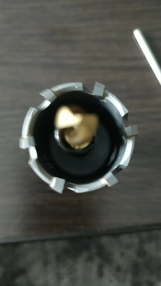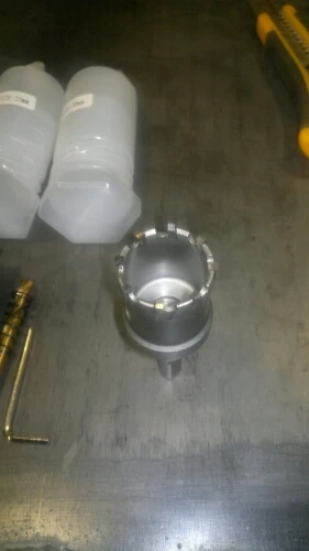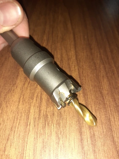 Заказывал самую маленькую фрезу (12 мм) пришла хорошо упакованная, в пластиковом пенале, но разобранная. Установленная на сверло пружина чисто физически не входит в саму фрезу. Буду надеяться, что не начнет забиваться, все же там нет особого места для входа металла.