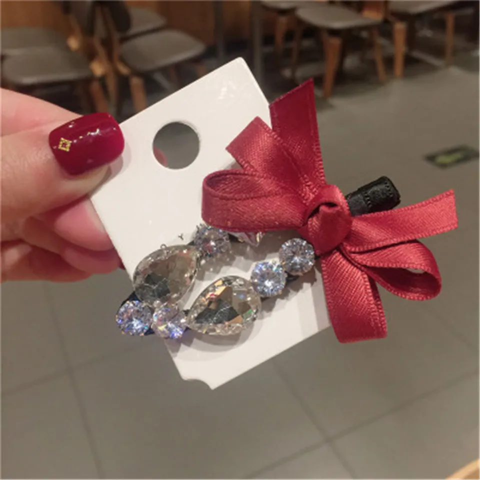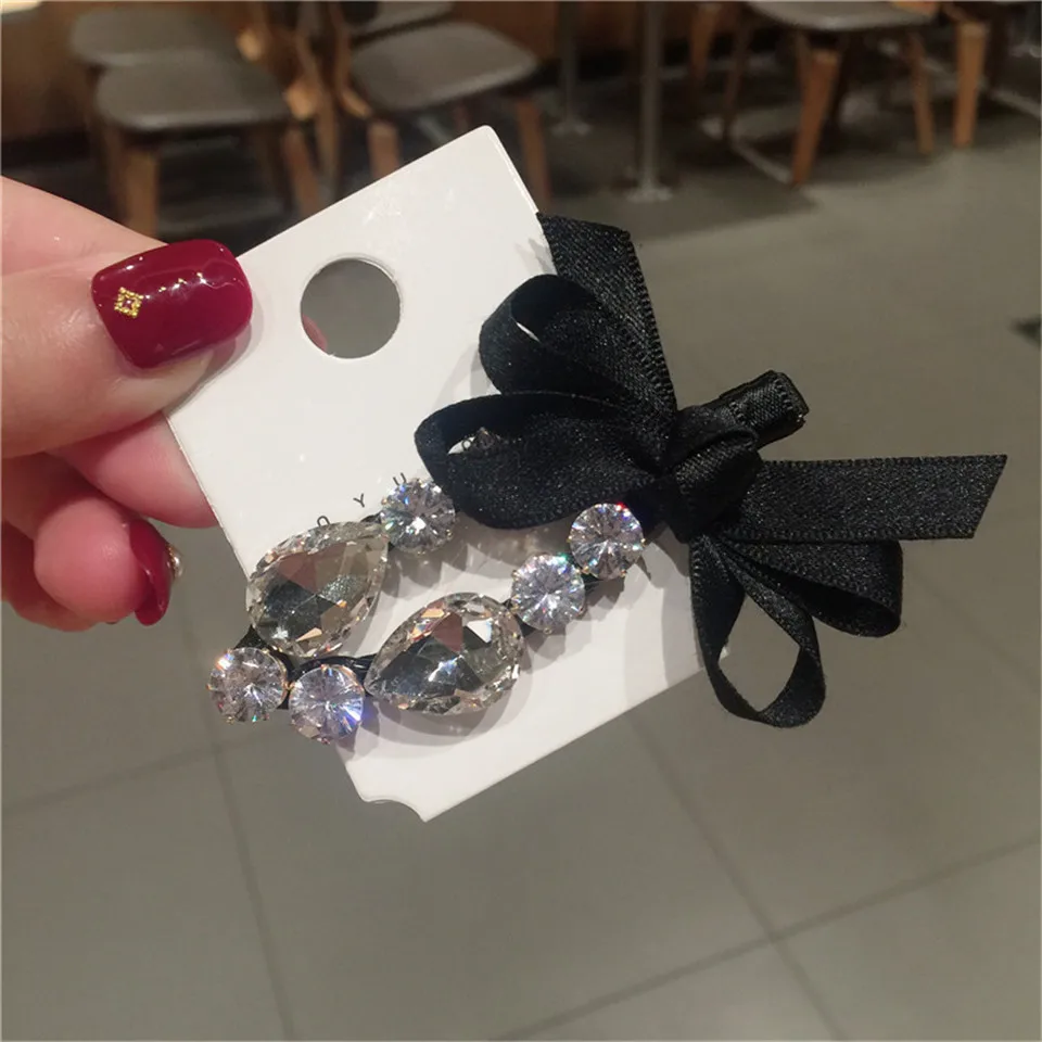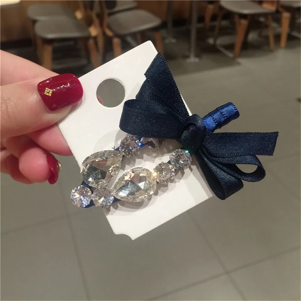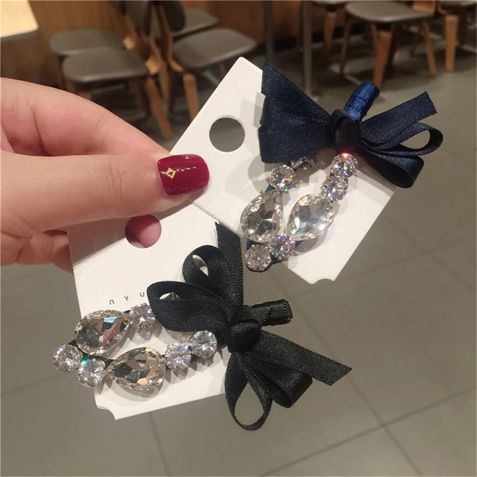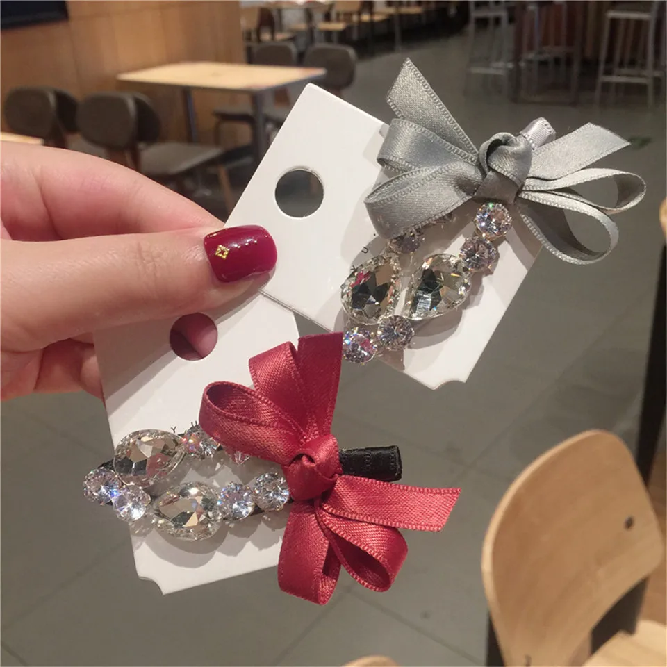 Элегантные металлические заколки для волос с бантом, стразы, женские клипсы, блестящие заколки, шпильки для волос с кристаллами, аксессуары для волос