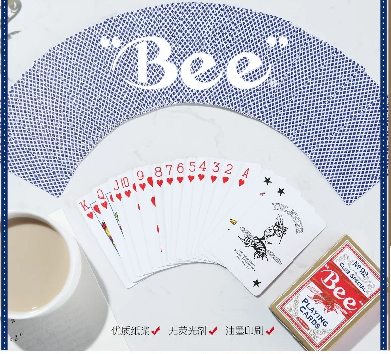 Дизайн спины всемирно известной пчелы! Выбор игрока, мягкая отделка, отсутствие границ и качественный запас для казино делают игральные карты Bee предпочтительной колодой среди казино, игроков и серьезных техников по работе с картами.
