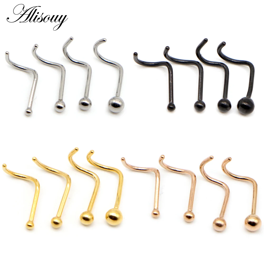 Alisouy 1 шт. маленькие кольца в нос с шариком носовые шпильки для пирсинга 1,5 мм 20 г нержавеющая сталь хирургическая нержавеющая сталь черныйрозовое золотосеребро Цвет