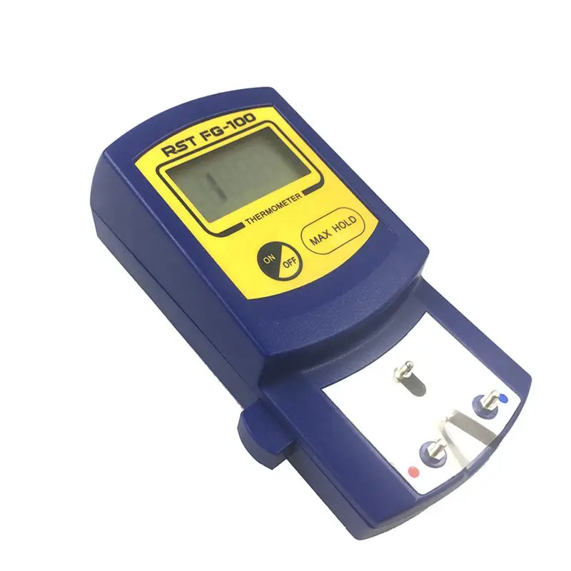 Термометр RST FG-100 термометр для паяльника Особенности: CA 0.2мм CA датчик может точно и быстро измерить температуру паяльника, подходит для бессвинцового припоя; температура наконечника может быть измерена под любым углом в соответствии с формой наконечника; С функцией автоматического отключения, когда термометр не используется в течение 3 минут, Питание автоматически выключается;Функция высокой температуры для записи сварочного наконечника. При нажатии кнопки [MAX HOLD] отображается запись высокой температуры сварочного наконечника. Дисплей низкого заряда батареи и дисплей повреждения датчика.Паяльник наконечник термометр наконечник температурный тестер 0-700 сельсиустип термометр обеспечивает надежный контроль температуры наконечника паяльника s. Компактный дизайн экономит ваше рабочее пространство и позволяет легко носить его с собой.При нажатии кнопки «MAX HOLD» будет отображаться «MAX HOLD», а на дисплее будет удерживаться Максимальная температура железа. Максимальное удержание: «Макс HOLD» отображается в нижней правой части ЖК-дисплея. Рабочая среда Температура окружающей среды/Диапазон влажности: от 0 до 40 градусов Цельсия, от 20 до 90% относительной влажности (без конденсации)Условия окружающей среды применимые степень загрязнения 2 (согласно IEC/UL 61010-1)Стиль: ручнойТип дисплея: ЦифровойНомер модели: FG-100Использование: ПромышленноеТеория: датчик температурыПозволяет измерять желаемое направление в соответствии с формой наконечникаФункция автоматического отключенияЕсли операция по измерению не будет выполнена в течение 3 минут, питание будет автоматически отключено.Максимальная Функция удержанияЛегко читаемая температураБольшой и четкий дисплейЦифровой температурный дисплей позволяет точно читатьКомпактный размерУдобно носить с собой и экономит рабочее пространствоИсточник питания 006P 9В сухая батареяРазрешение температуры 1 ЦельсияДиапазон измерения температуры от 0 до 700 градусов ЦельсияТочность температуры ± 3 градусов Цельсия (от 300 до 600 градусов Цельсия)± 5 градусов Цельсия (не выше)Термопара с датчиком температуры K (CA)ЖК-дисплей: 3 1/2 цифрыКроме измеренных температур, отображение показаний включает следующее:Низкий уровень заряда батареиСигнализация выгоранияЦвет: синийМатериал: АБС + металлРазмер: размер изделия: около 68*140*38 ммРазмер дисплея: 1,9 дюйма и подПосылка:1 x FG-100 паяльник наконечник термометр5 x бессвинцовый датчикПримечание: когда появляется сигнал низкого заряда батареи, обязательно Замените аккумулятор. Невыполнение этого требования приведет к неправильным измерениям температуры.Только вышеуказанная посылка, другие товары не включены.Примечание: светильник и различные дисплеи могут привести к тому, что цвет товара на картинке немного отличается от реального. Допускается погрешность в измерениях +/- 1-3 см.