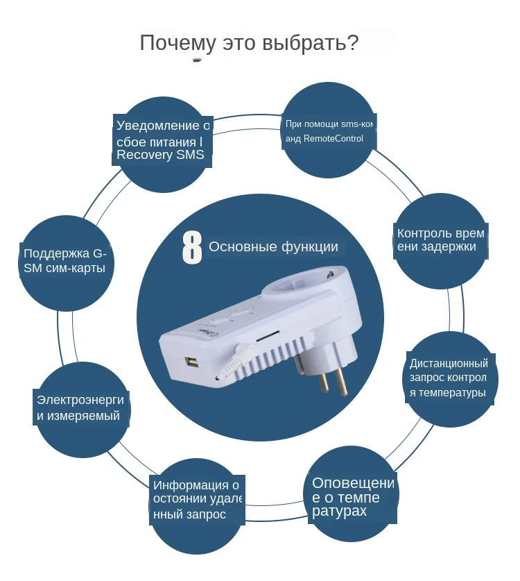 Функции свои розетка полностью выполняет. При отключении электричества отправляет смс (собственно для этих целей и покупалась),по звонку и смс можно вкл и выкл,узнать температуру в посещении и многое другое. Доставка быстрая в москву. Отличный продавец