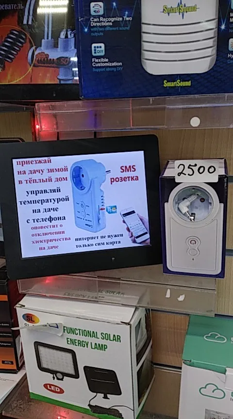Розетка стоит на даче. Включает/выключает обогреватель. Всё работает по смс. Доставка несколько дней до двери квартиры.