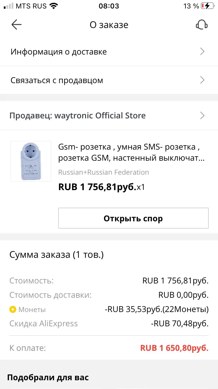 Первая розетка пришла нерабочая, связался с продавцом, выслали новую. Посылка пришла очень быстро, устройство работает. Спасибо большое!