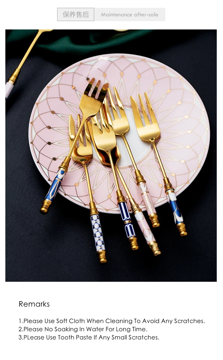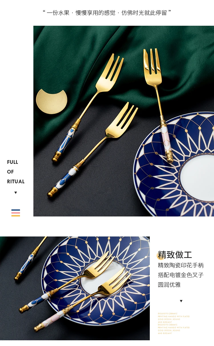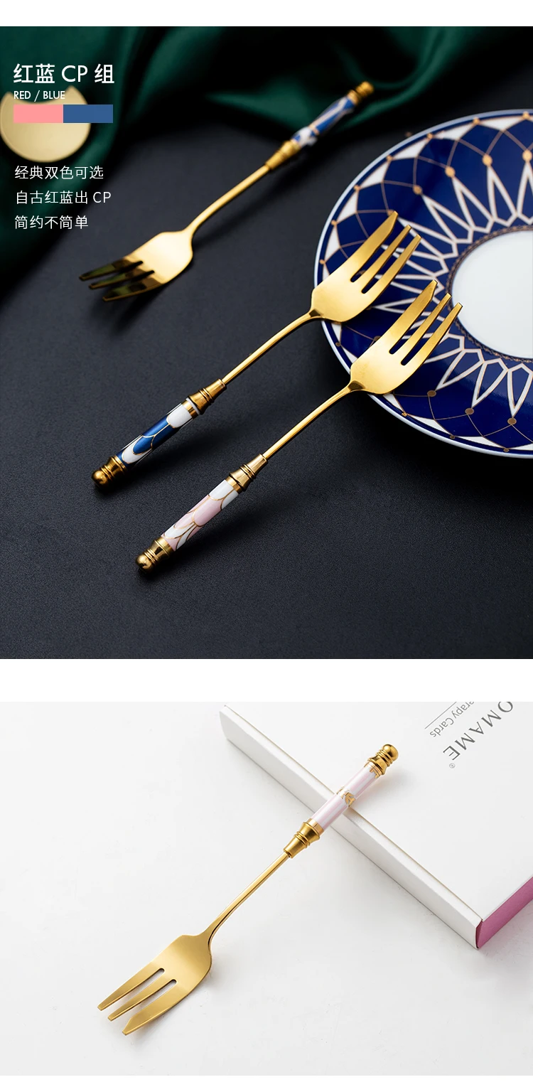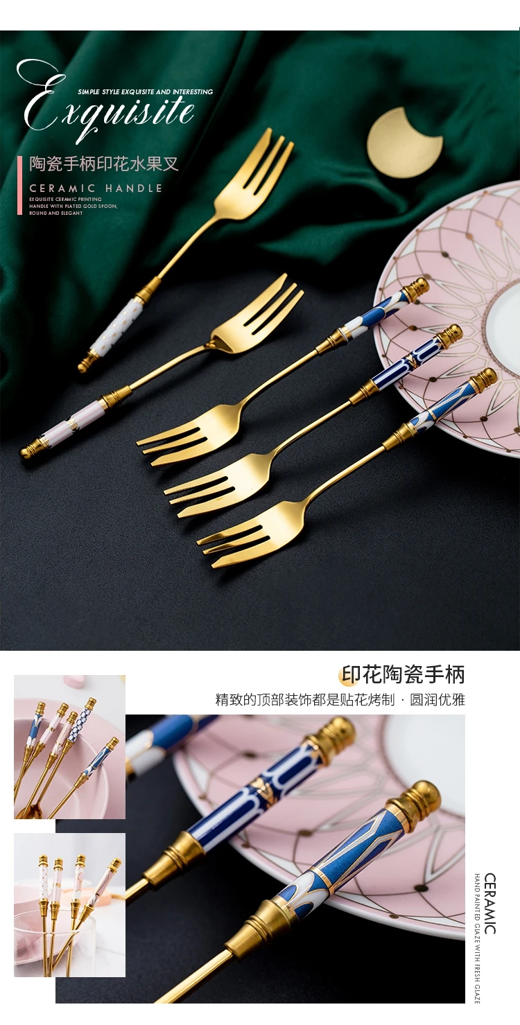 Вилка для фруктов, из нержавеющей стали, с золотой керамической ручкой, 1 шт.