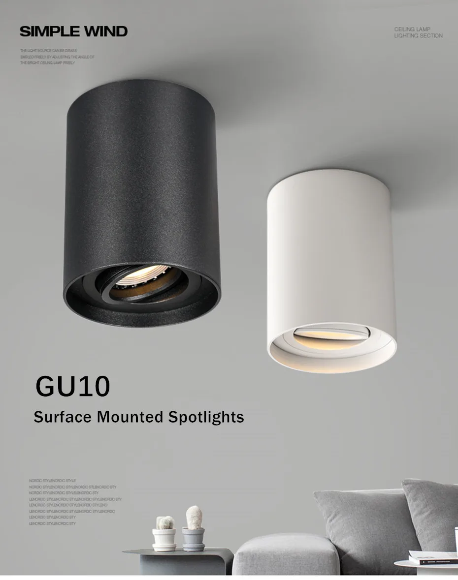 Светодиодный светильник GU10 с поверхностным креплением, потолочная...