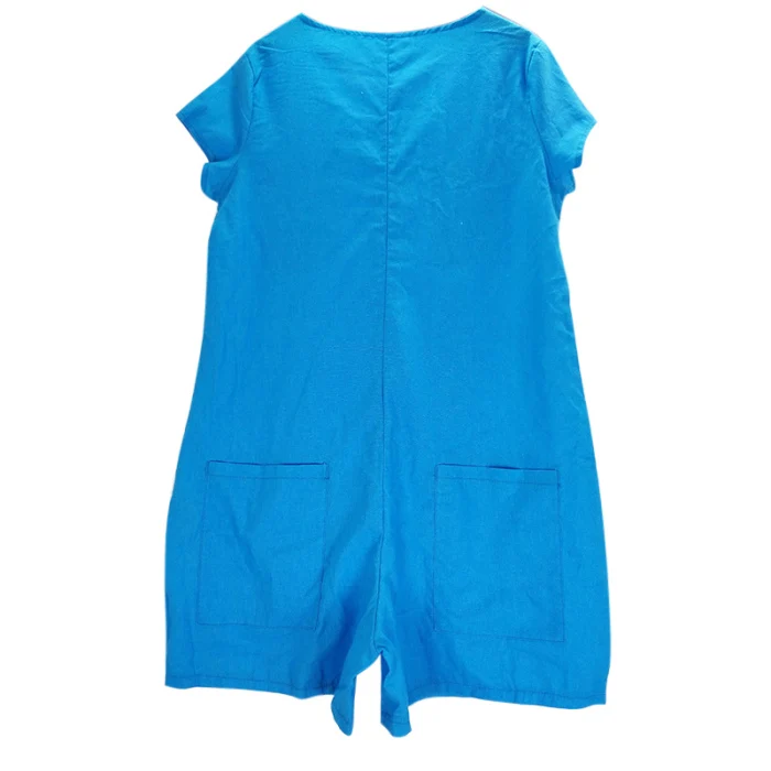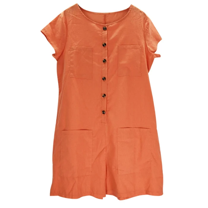 Женский хлопковый льняной размера плюс комбинезон на пуговицах, шорты, Летний комбинезон XRQ88
