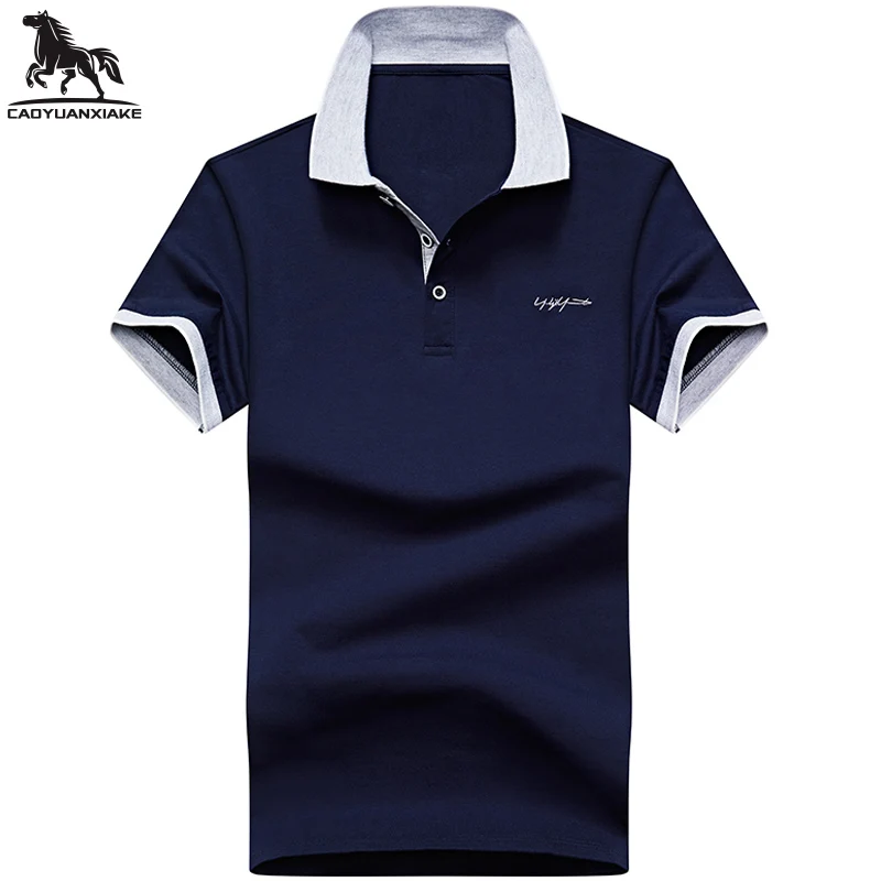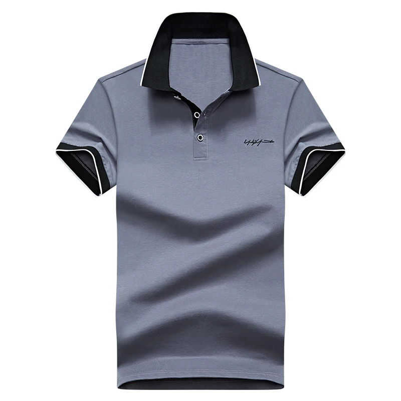 Рубашка-поло мужская летняя Новинка Мужская рубашка-поло с коротким рукавом Однотонная топ с вышивкой хлопковая одежда мужская повседневная рубашка-поло 8801