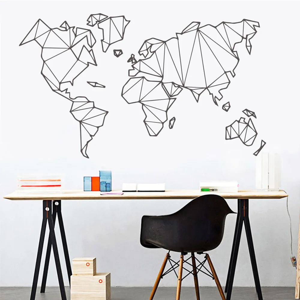 Большой размер, Геометрическая карта мира, настенная наклейка, виниловая роспись, съемный декор для спальни, наклейки для дома, гостиной, украшения, аксессуары