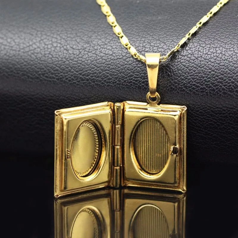 Золотой цвет Ислам Аллах мусульманское ожерелье Коран книга открываемый кулон ожерелье фото медальон коробка ожерелье религия исламские украшения