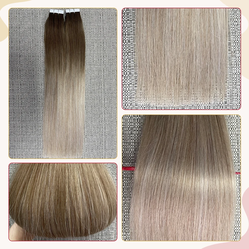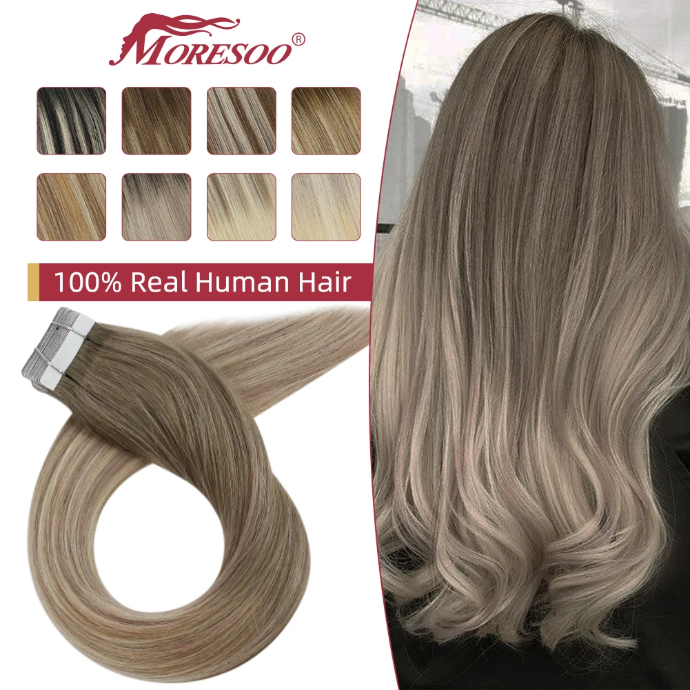 Лента Moresoo для наращивания человеческих волос, цвет Омбре, не Реми, клейкие бразильские волосы, 100% настоящие прямые Бесшовные ленты из полиуретана волосы для наращивания натуральные волосы
