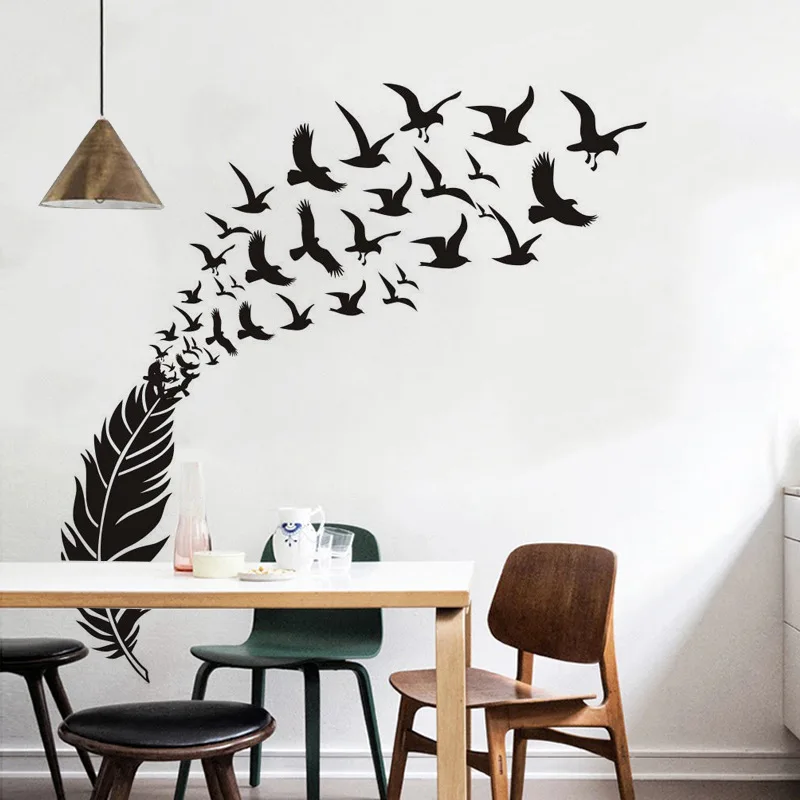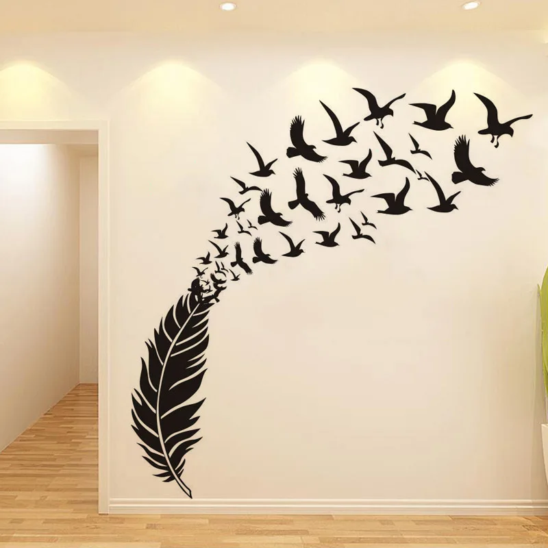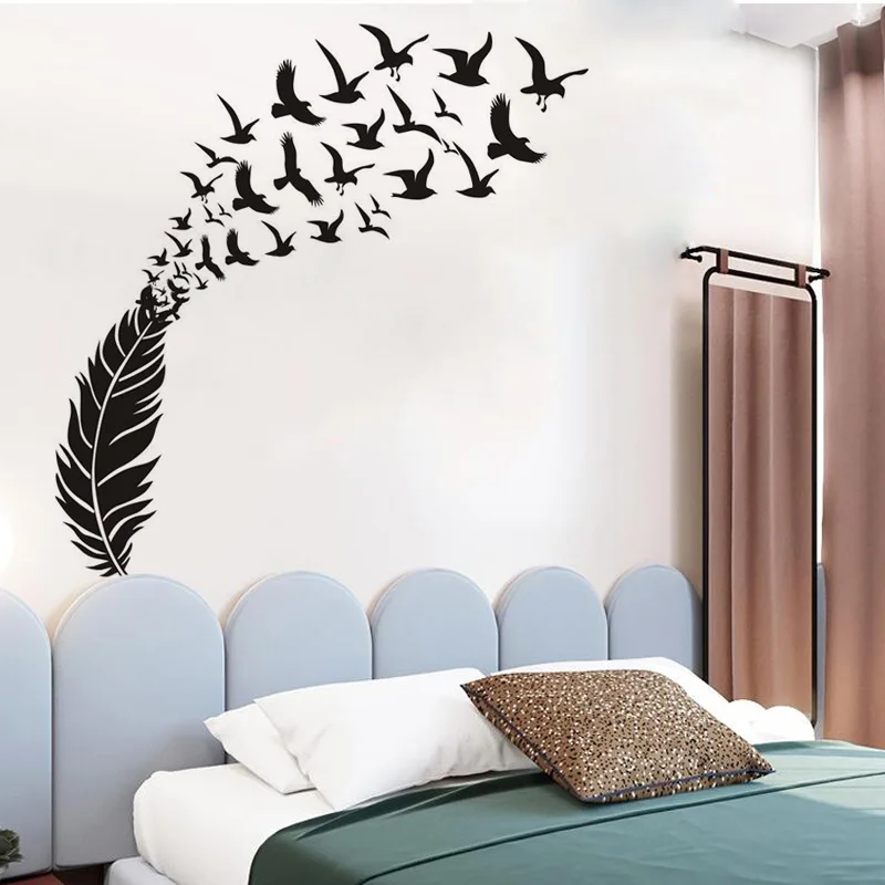 Нежные декоративные виниловые наклейки на стену с перьями и птицами, декоративные наклейки для спальни, наклейки для детской комнаты, декоративные наклейки на стену
