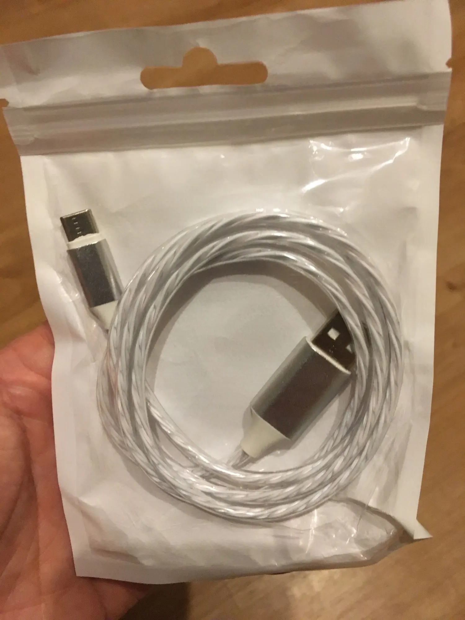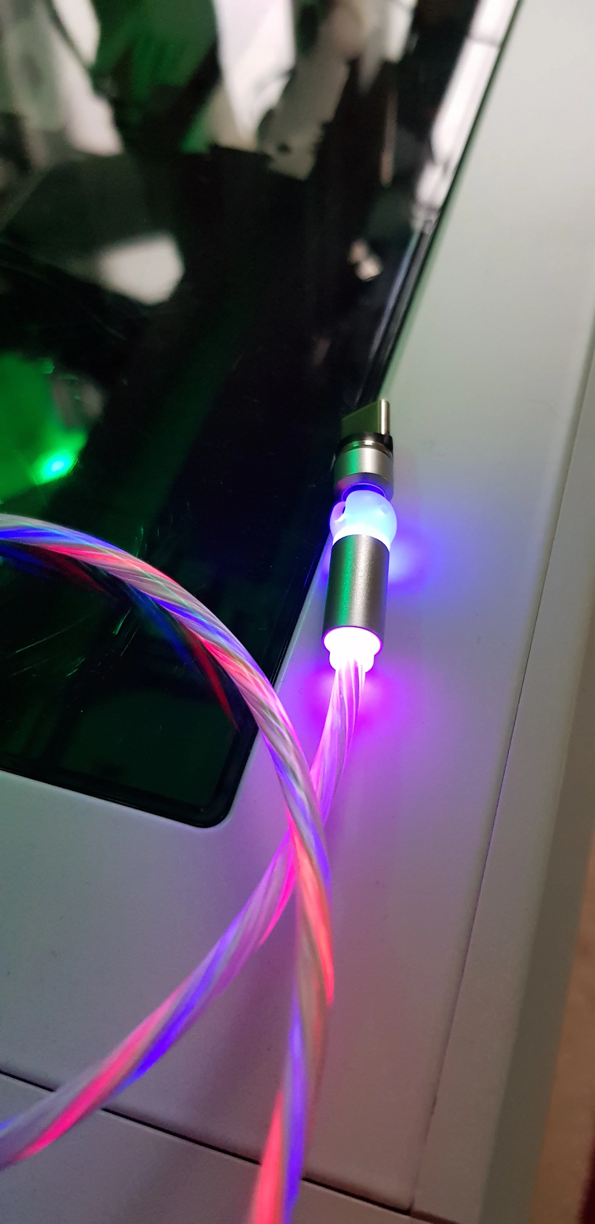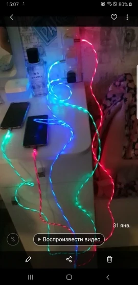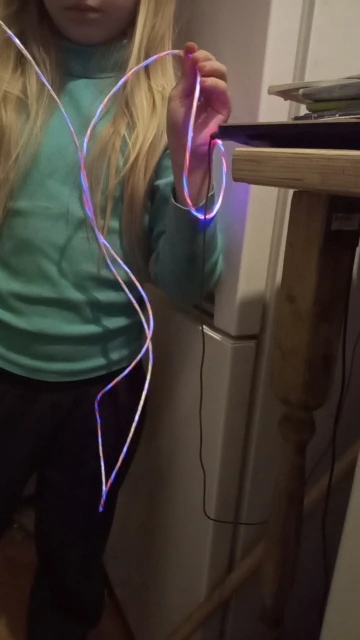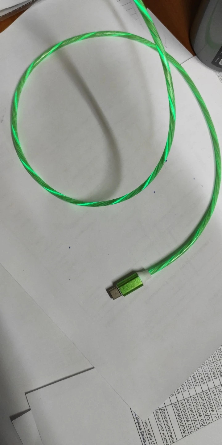 прикольный провод. заказал две штуки, разноцветного свечения, со штекерами type-c. шли правда долго до Мурманска. а так, красиво. новый год.