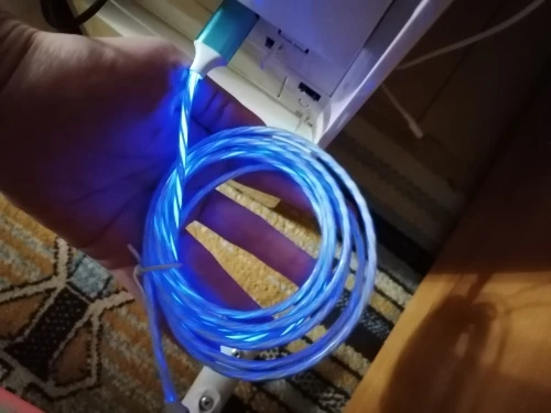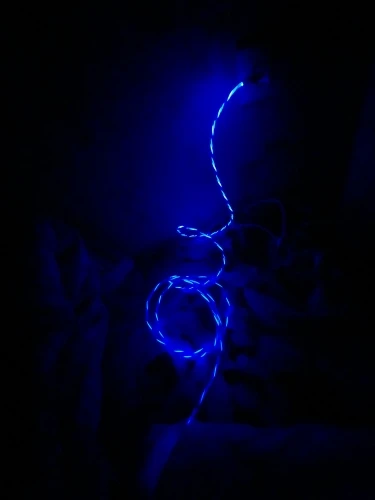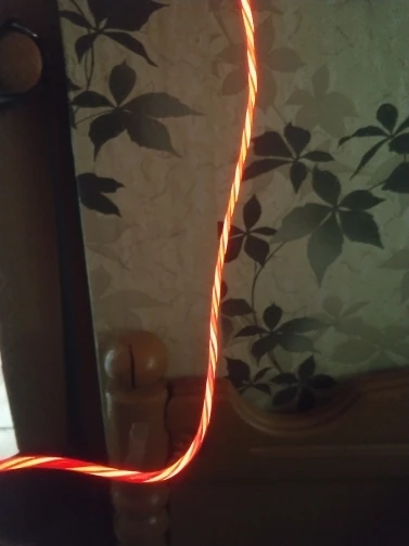 кабель качественный,светится прикольно,создаётся впечатление,что по кабелю свет течёт,очень красиво.