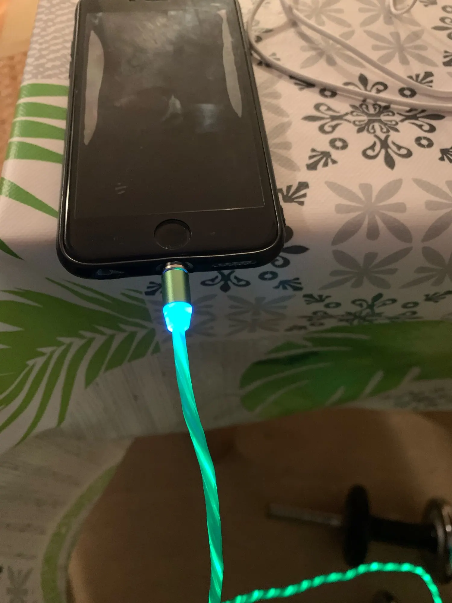 Хороший забавный кабель. Брал дочке. Ей нравиться. Яркий. Днём подсветка хорошо видна. Красиво. А вот ночью перебор. Светомузыка. Имейте в виду. Зарядка идёт нормально