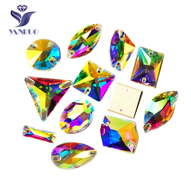 YANRUO смешанные формы SW Rivoli капли стразы s пришить стеклянные стразы кристалл плоские задние Стразы для свадебные платья одежда
