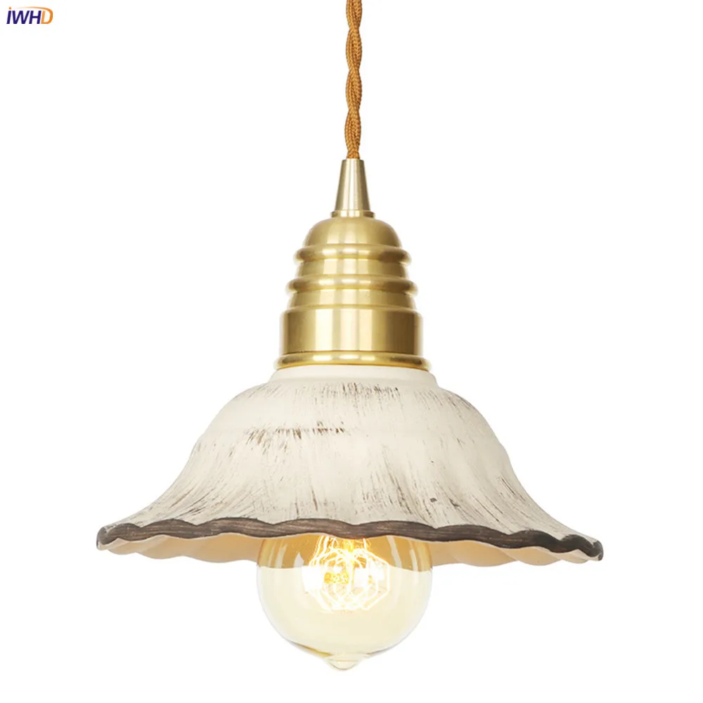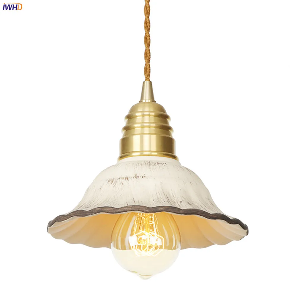 Светильник IWHD в японском стиле, светильник, прикроватный светильник для столовой, гостиной, кафе, современный Медный Подвесной светильник в скандинавском стиле, светодиодный светильник