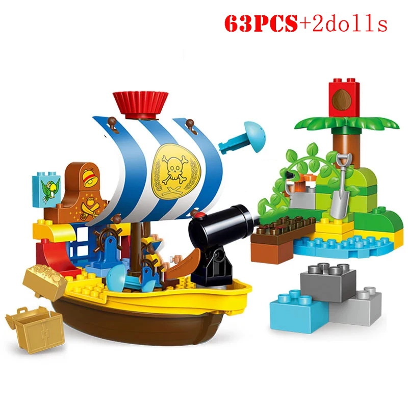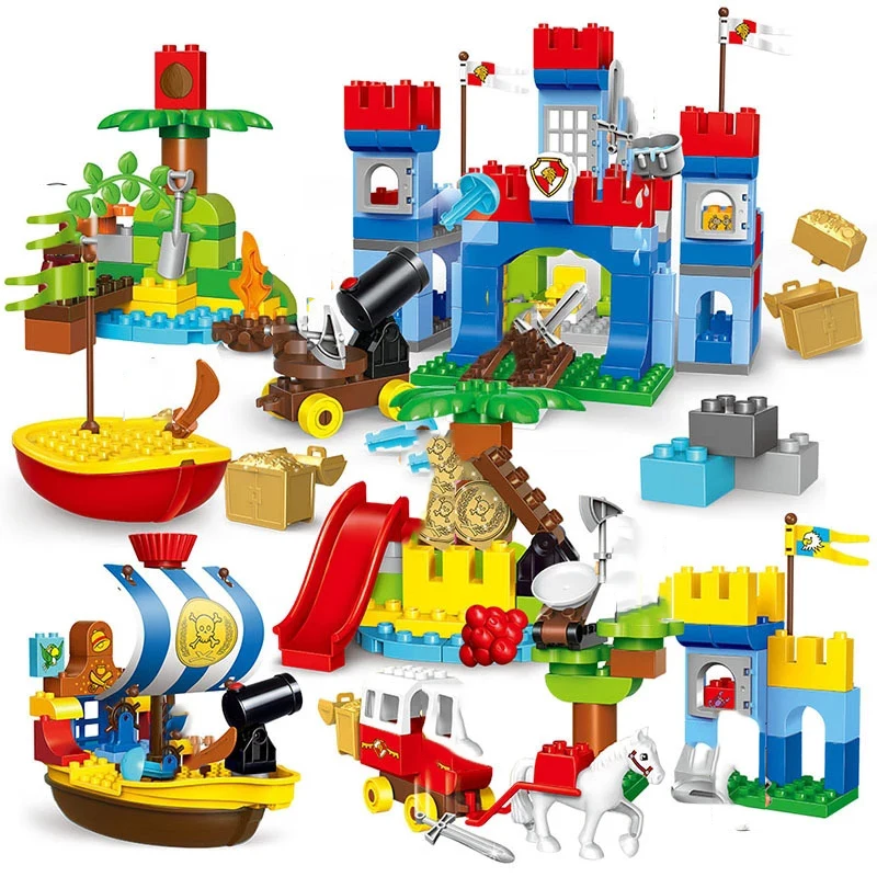 Конструктор Пиратская война, большие строительные блоки, замок, лодка, развивающие кубики, развивающие игрушки для детей, подарки для детей
