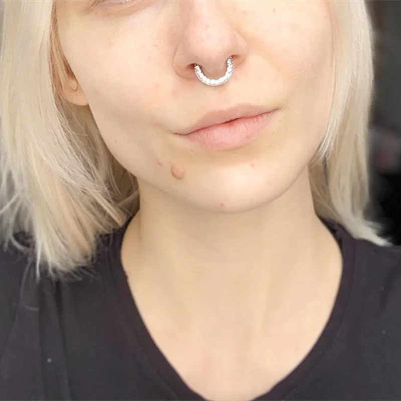 Очень крутое украшение. Если думаете - прокалывать нос или нет, то советую сначала попробовать септум, чтобы понять. Товар полностью соответсвует описанию, очень красиво блестит
