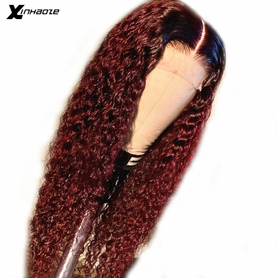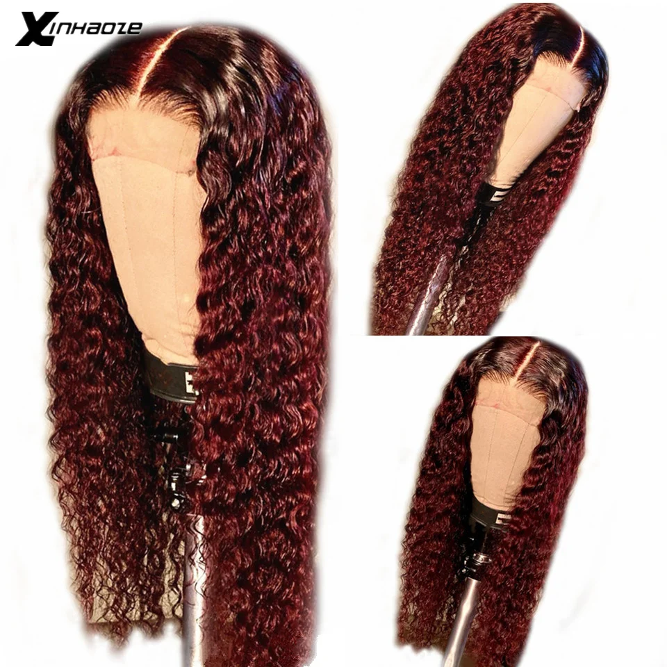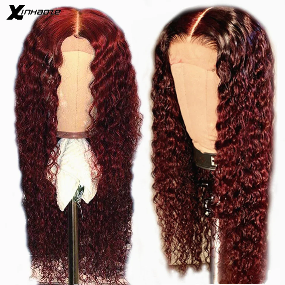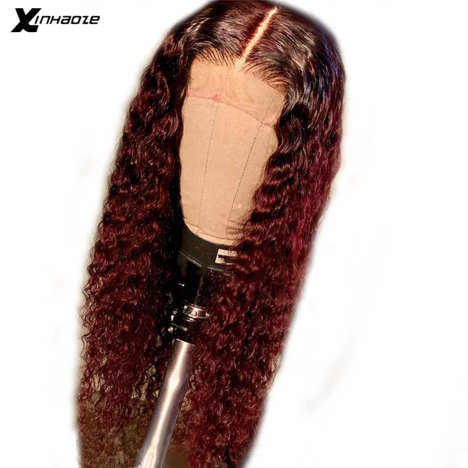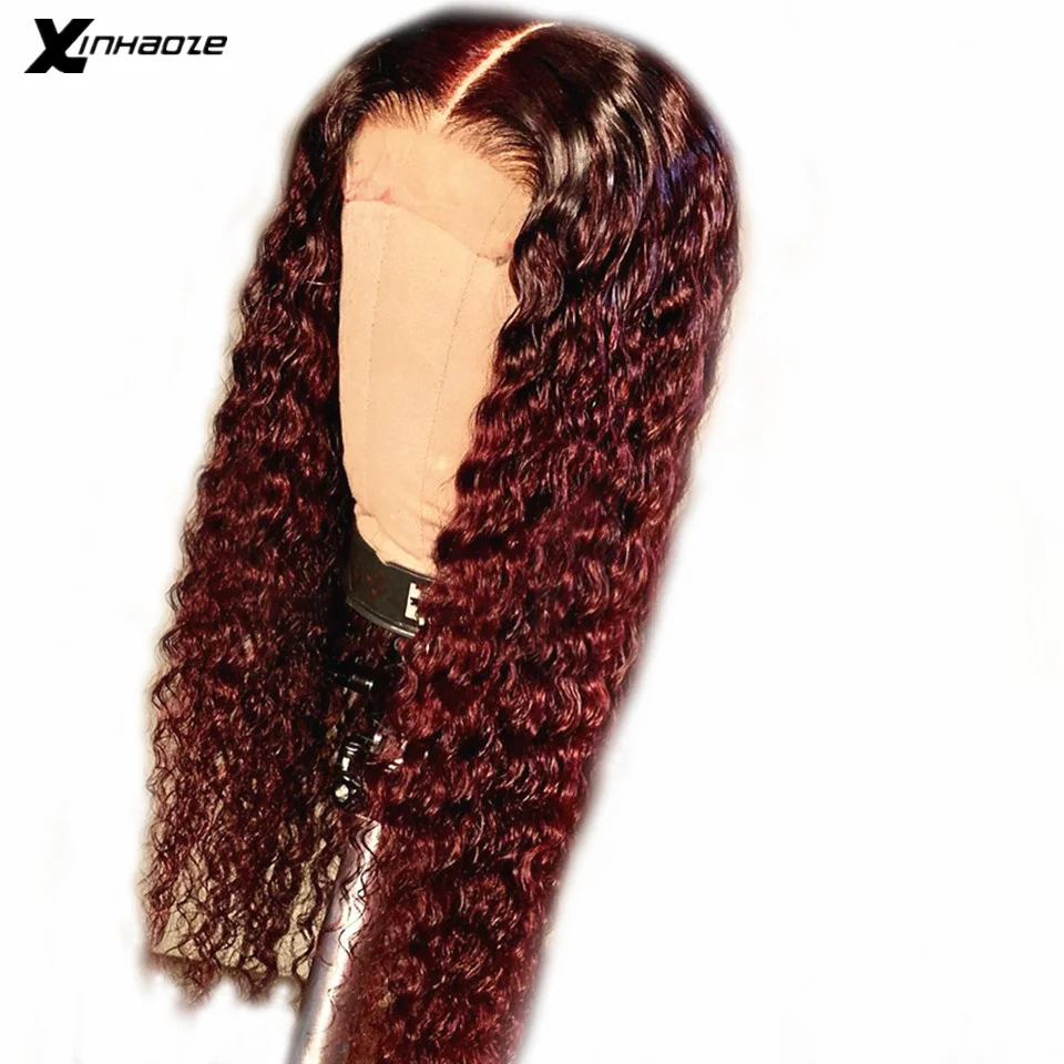 Цветной 13x4 V часть бордовый Синтетические волосы на кружеве парики из натуральных волос на кружевной эффектом деграде (переход от темного к 99J бразильские волнистые парик человеческих волос бесклеевой цвет красного вина 99j парик