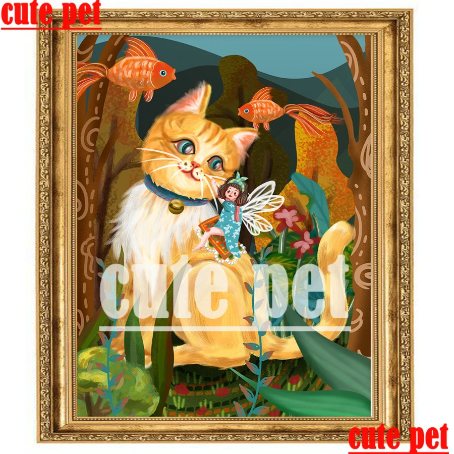 Мозаика для творчества с милым питомцем, алмазная живопись, кот и девушка-эльф, полное сверление, перекрестные стежки, картины для украшения стен дома