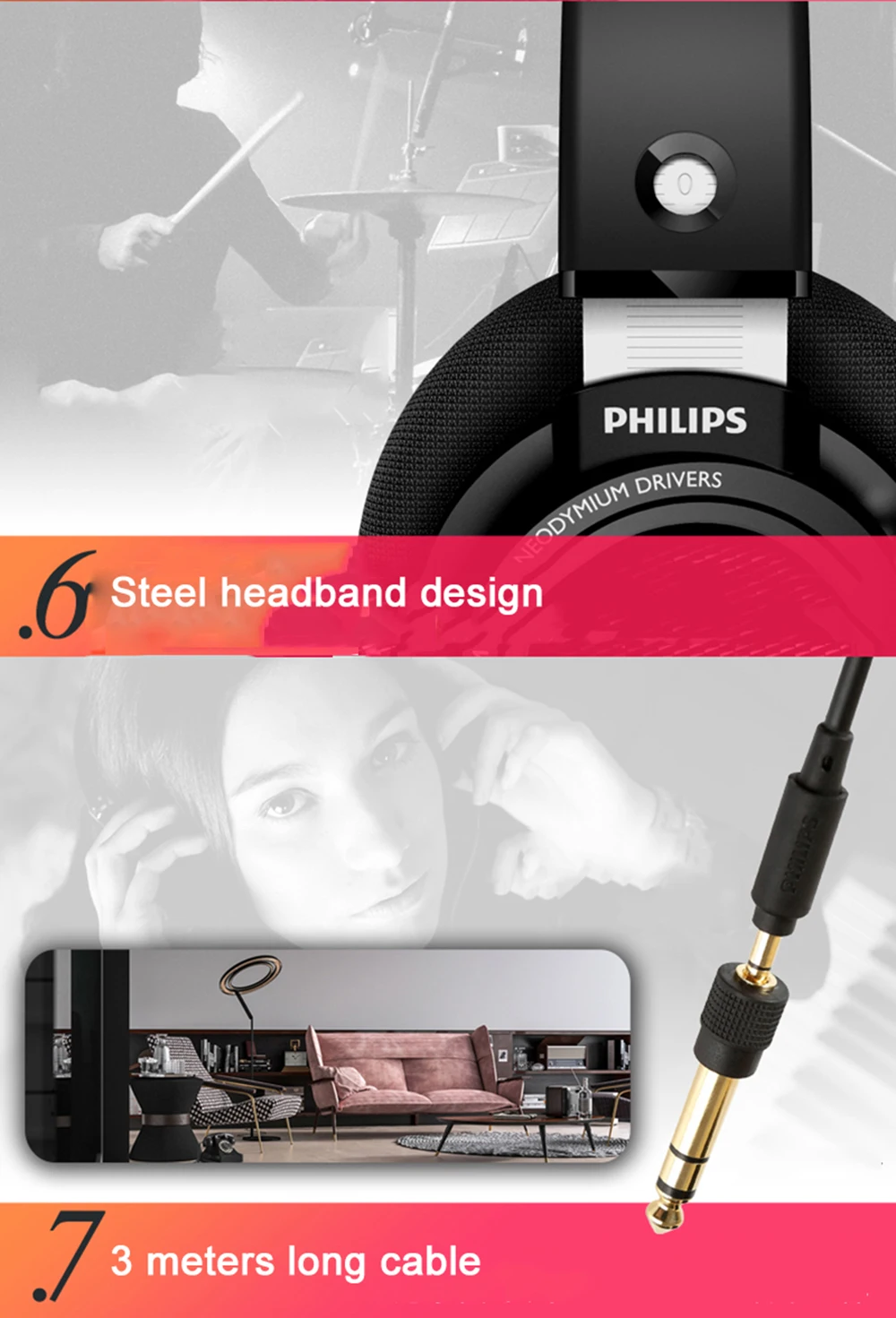 1.Philips SHP9500-это настоящая HIFI гарнитура, она действительно может воспроизводить чистые музыкальные эмоции. 2. Открытая акустическая задняя крышка улучшает прозрачность качества звука. 3. Дышащие амбушюры, удобные в носке, без чувства угнетения. 4. Стальная оголовье делает прочность и долговечность гарнитуры намного выше, даже если вы находитесь в движении, не нужно беспокоиться о повреждении наушников. 5. Если вы не хотите беспокоить окружающих людей, проводная гарнитура длиной 3 м позволит вам наслаждаться прекрасной музыкой в комнате.