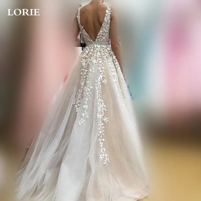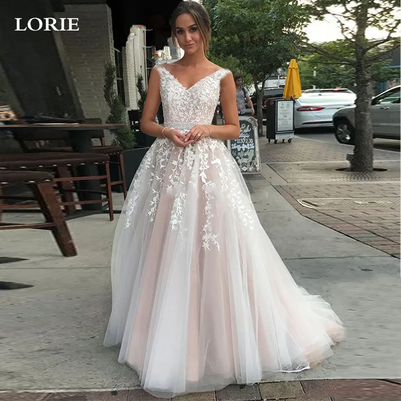 LORIE розовое свадебное платье принцессы с хрустальным поясом с V-образным вырезом кружевное платье для невесты ТРАПЕЦИЕВИДНОЕ Тюлевое платье с открытой спиной