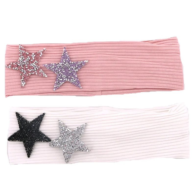 Женская хлопковая повязка на голову в рубчик, разноцветная дизайнерская повязка для волос со звездами в повседневном стиле, аксессуары для волос для девушек, 2020