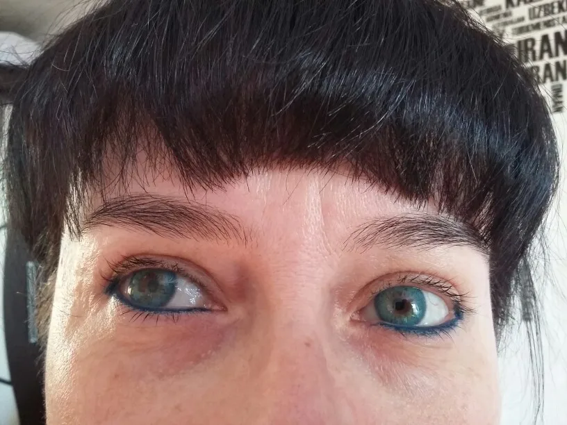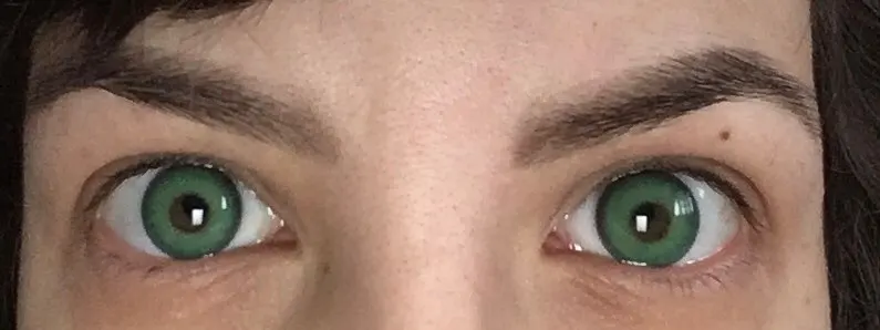 На 1м фото в линзах, на 2м без. Линзы по качеству средние, легко могут порваться, за свою стоимость это ожидаемо и простительно. Так же под зрачок выделено мало места, из-за этого плохо в них вижу. А в целом описанию соответсвуют, цвет перекрывает даже больше, чем я хотела.