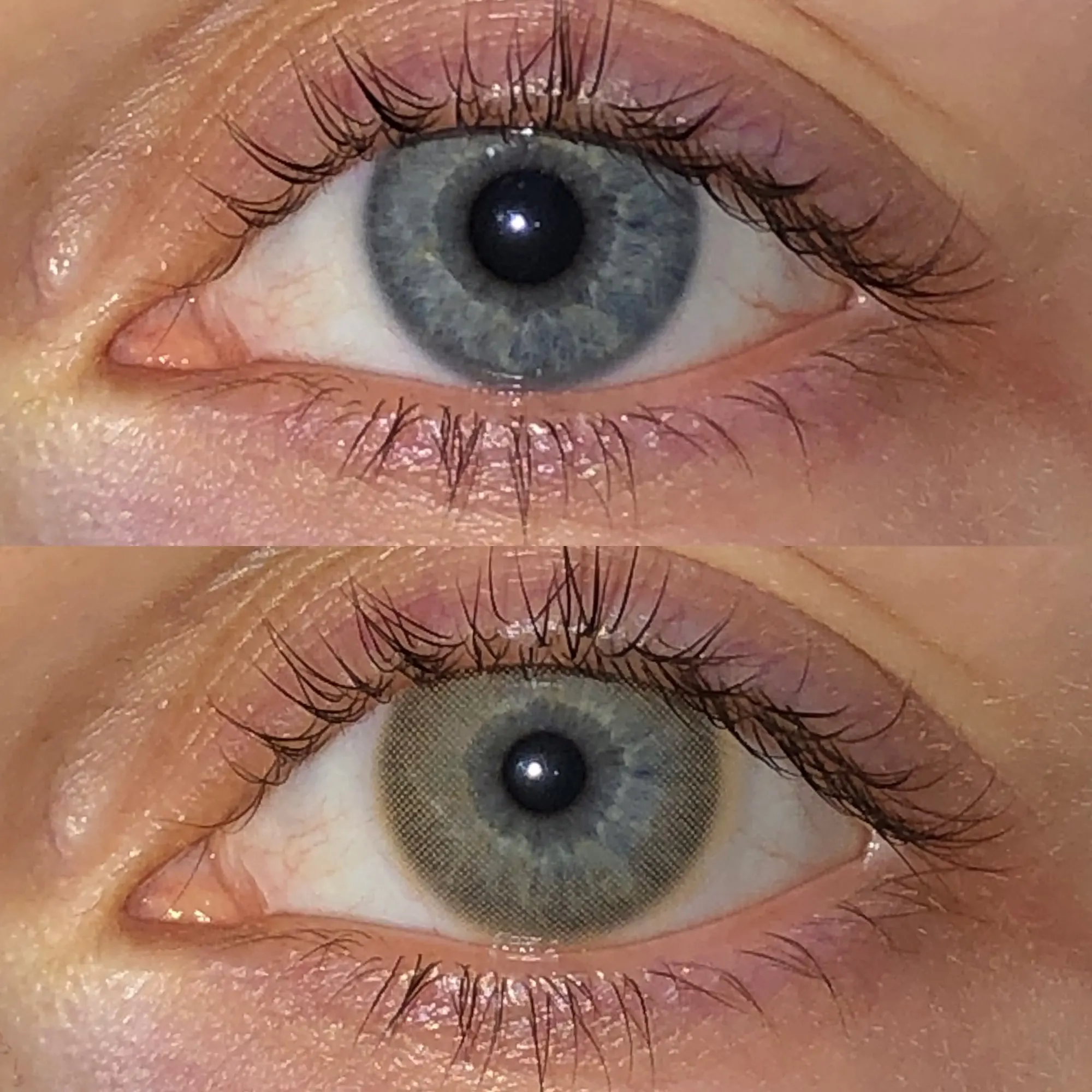 Линзы отличные, серые перекрыли какий цвет глаз полностью. Второе фото без линз