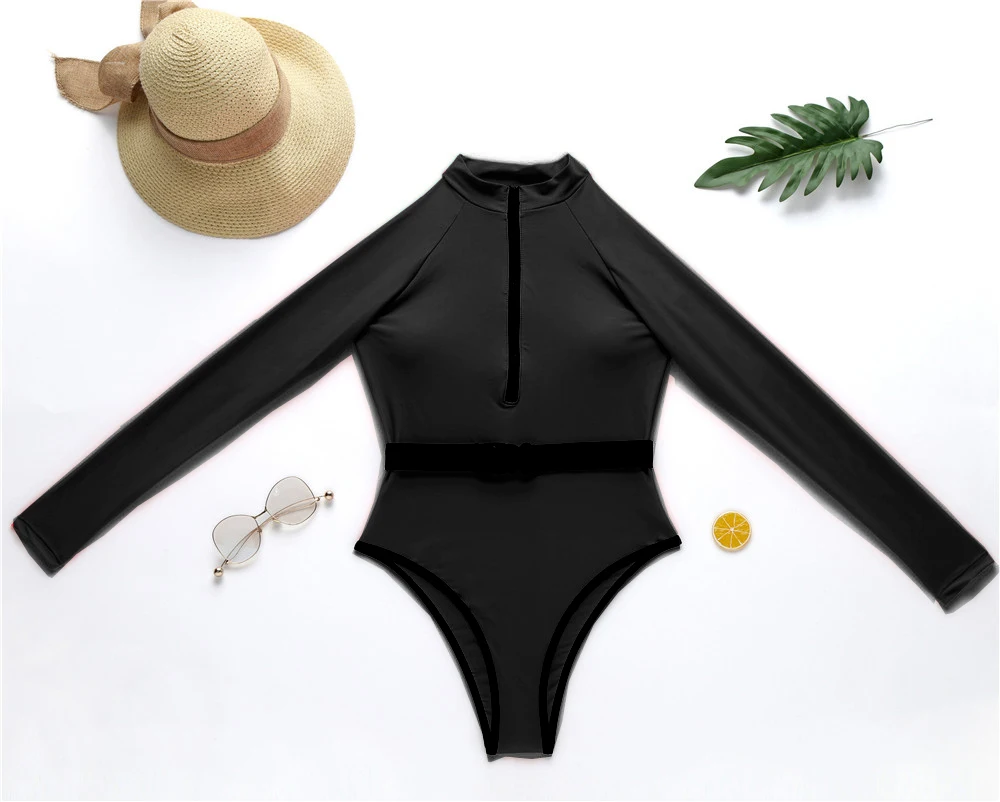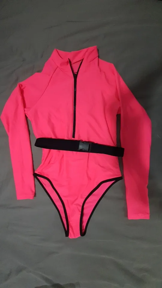 Женский цельный купальник, с длинным рукавом, флуоресцентный зеленый костюм на молнии для серфинга, с ремнем, с защитой от ультрафиолета