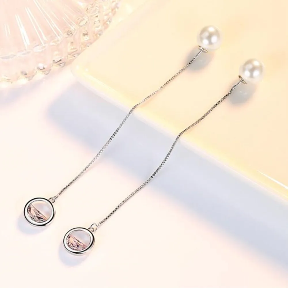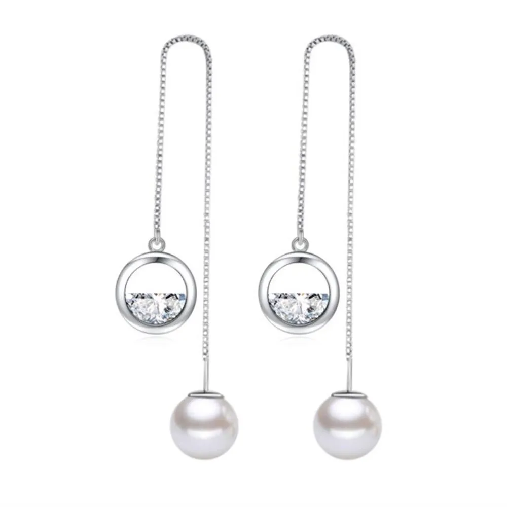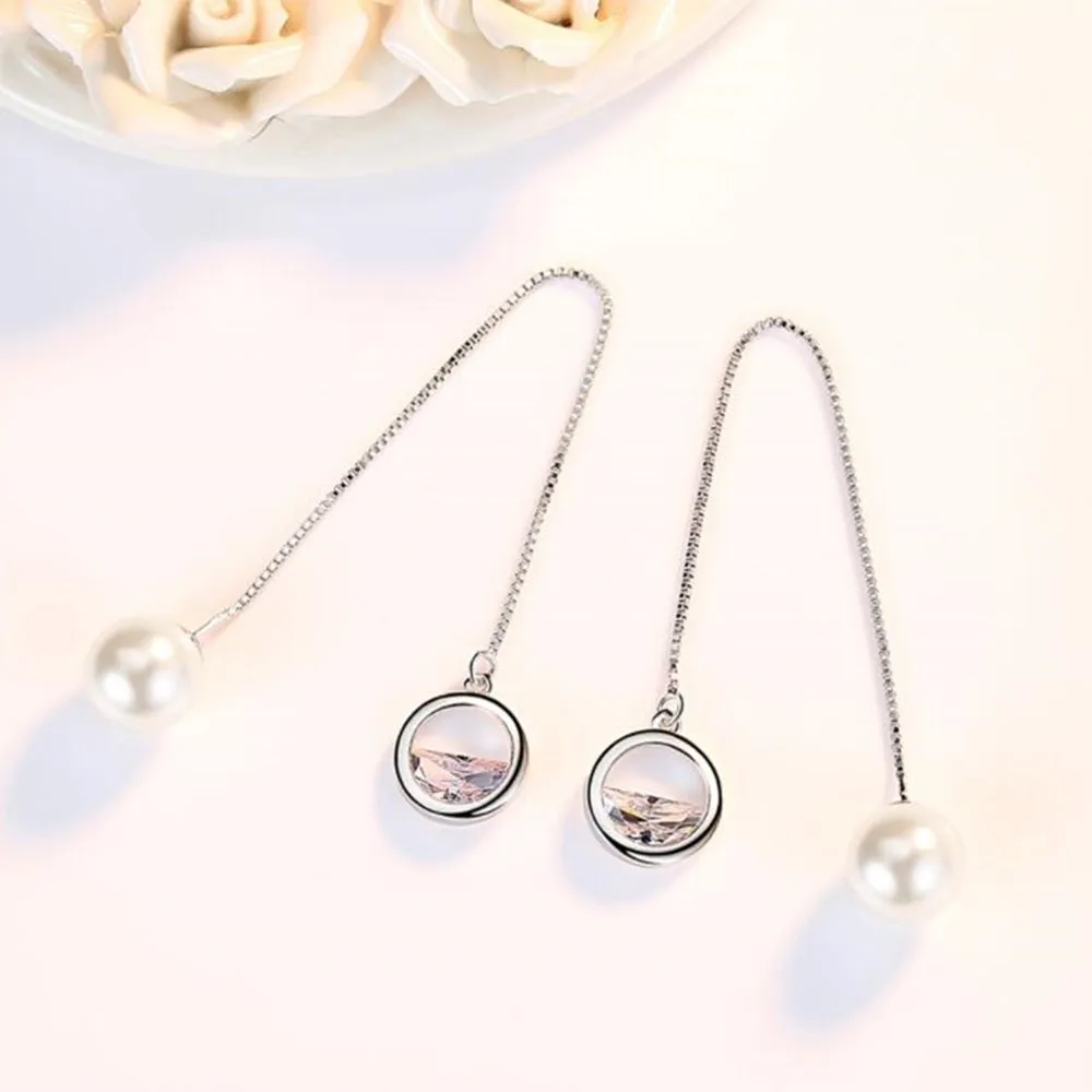 Женские серьги-кисточки с полукруглым вырезом из 925 пробы серебра с фианитами