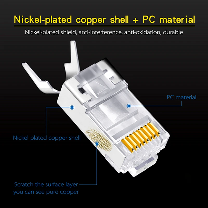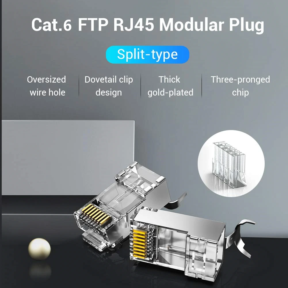 Разъем RJ45 Cat6, штекеры RJ45 50U, экранированный разъем RJ45 Cat6, сетевой кабель Ethernet 8P8C, 6 модульных штекеров